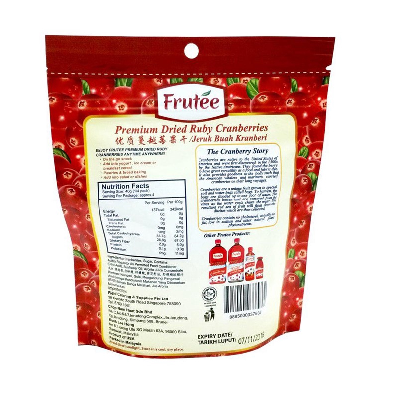 Frutee Premium Dried Ruby Cranberries (170g)
