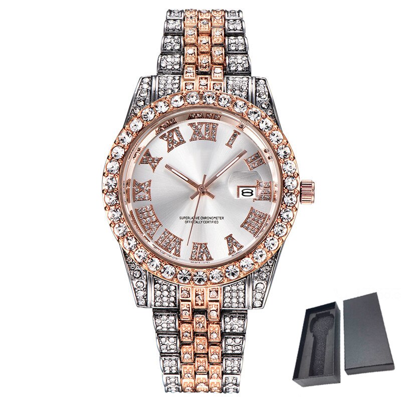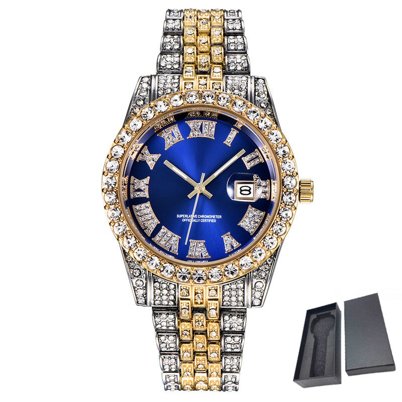 Full Bling AAA Diamond Watch Men's Luxury and Fashion Quartz Men's Watch Gold and Silver Men's Clock Direct Selling Role Relogio Masculino