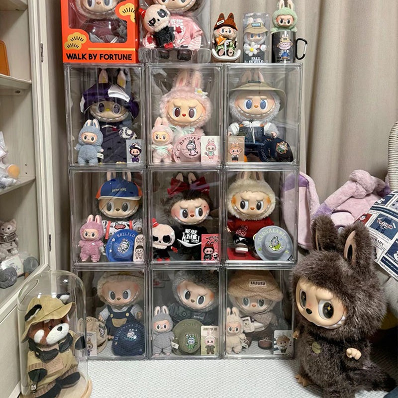 Fully Clear Acrylic Popmart Figurine Labubu Display Box Bag Storeage