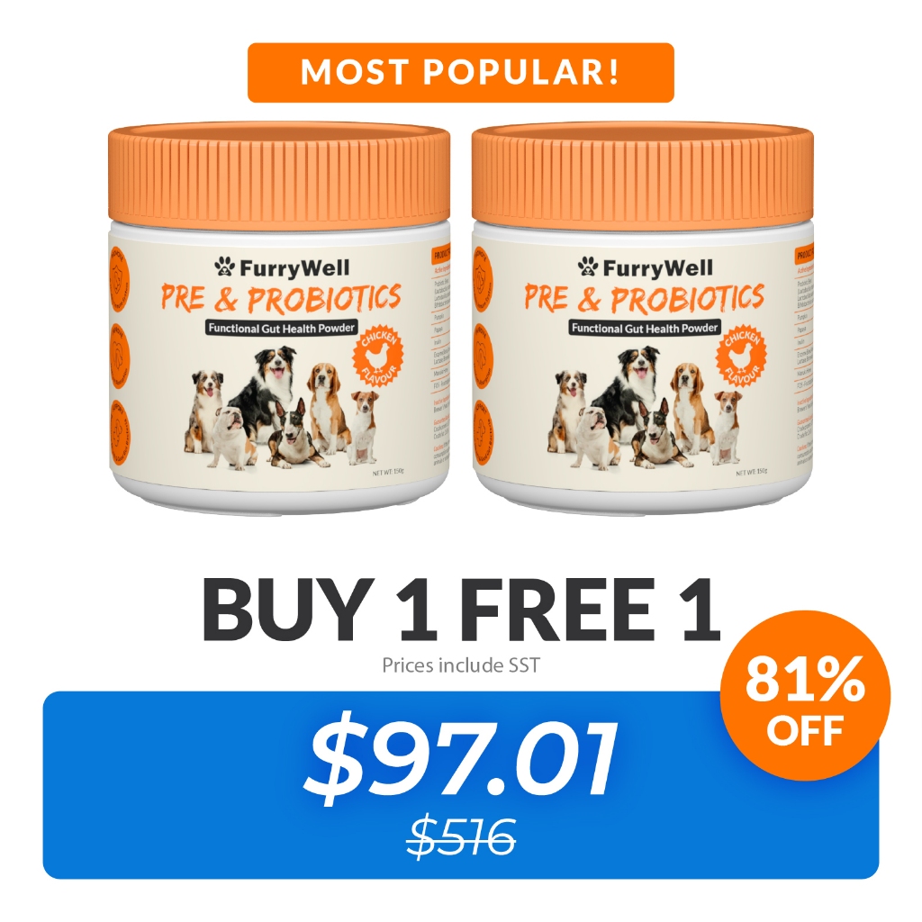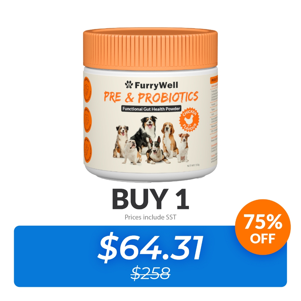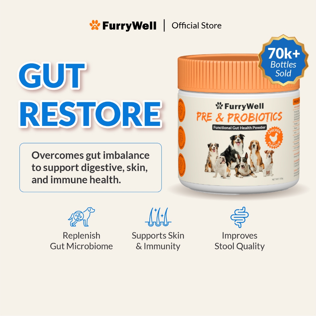 FurryWell Gut Restore Powder for Dogs | Restore immunity, gut balance, skin & digestive health(150g)