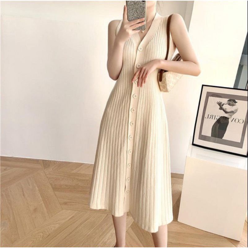 FX SHOP GEMMA BUTTON KNITTED DRESS KOREAN DRESS LONG KNITTED DRESS NEWEST KNITTED DRESS WOMEN'S DRESS