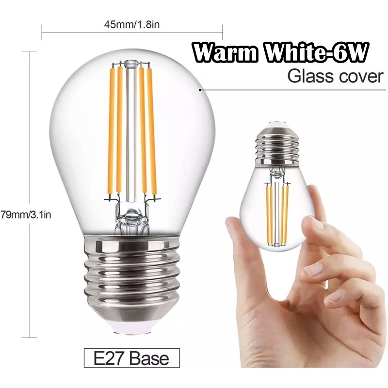 G45 Led Filament Bulb 220V Bulb Vintage E27 Filament Lamp 4W 6W LED Light Bulb Bedside Table for Room decor Night Light