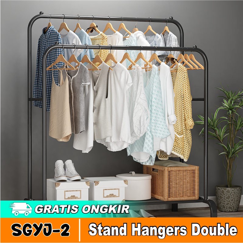 GANTUNGAN Stand Hanger Clothes Hanger Clothes Hanger Clothesline Rack Double Multipurpose Portable Clothes And Shoes Storage