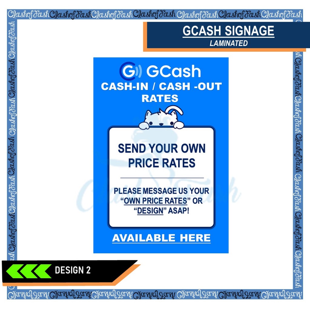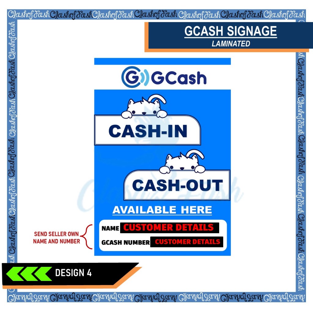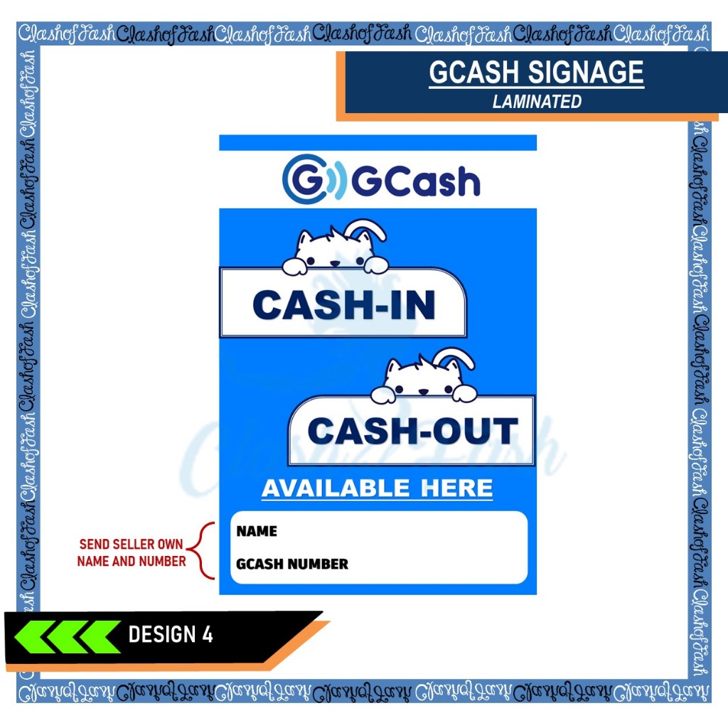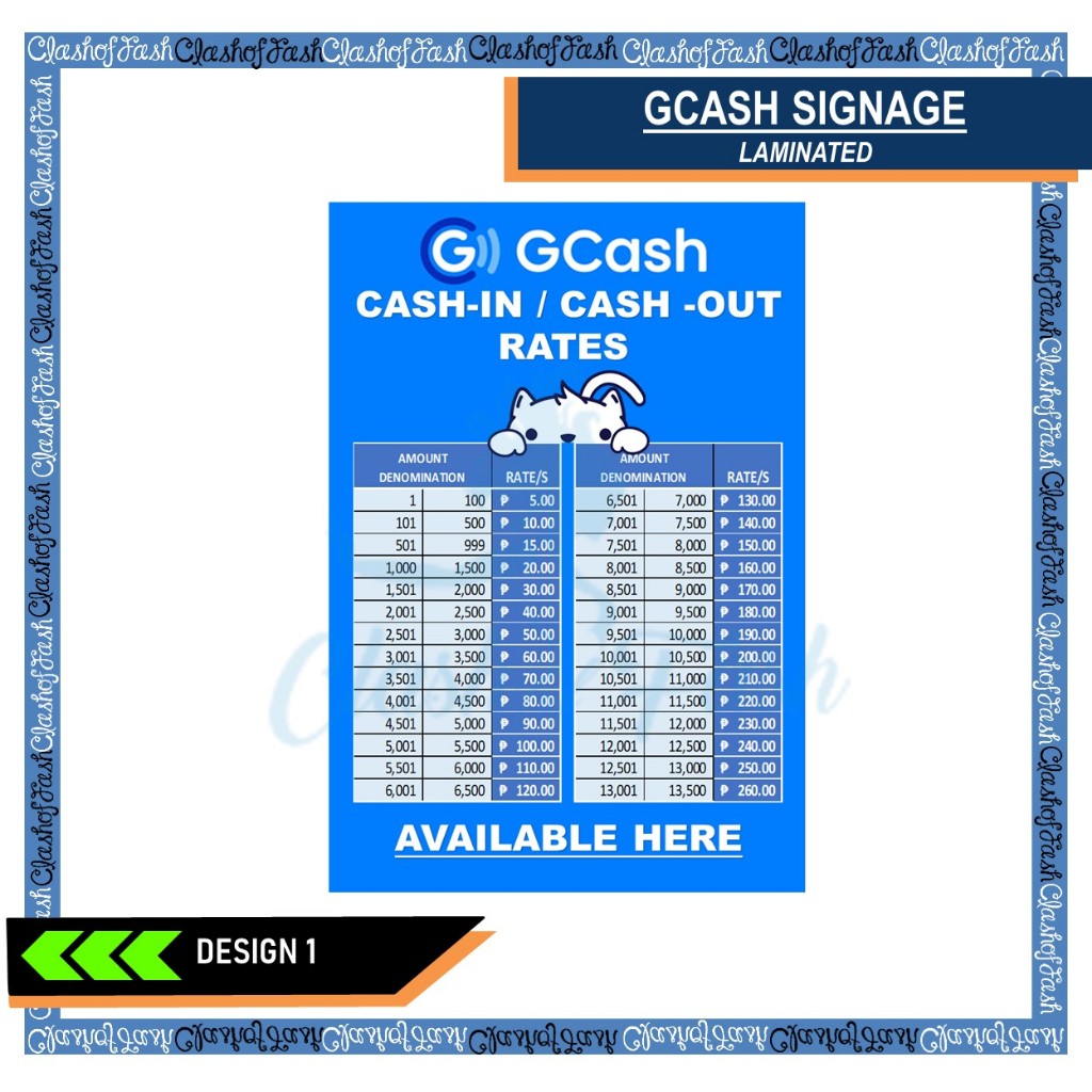 GCASH CASH-IN CASH-OUT RATES LAMINATED SIGNAGE A4 (8"X11")