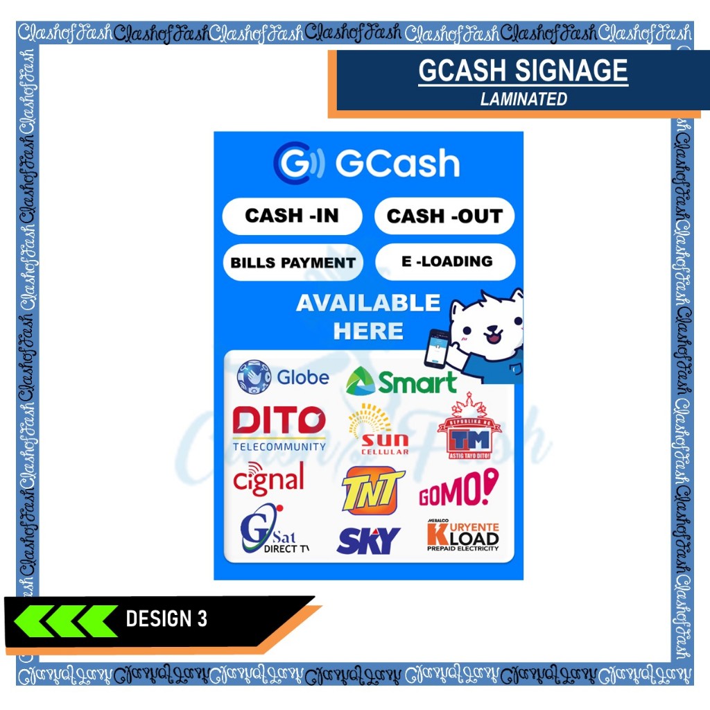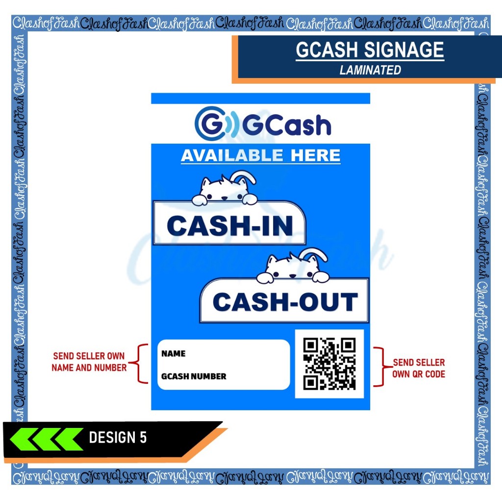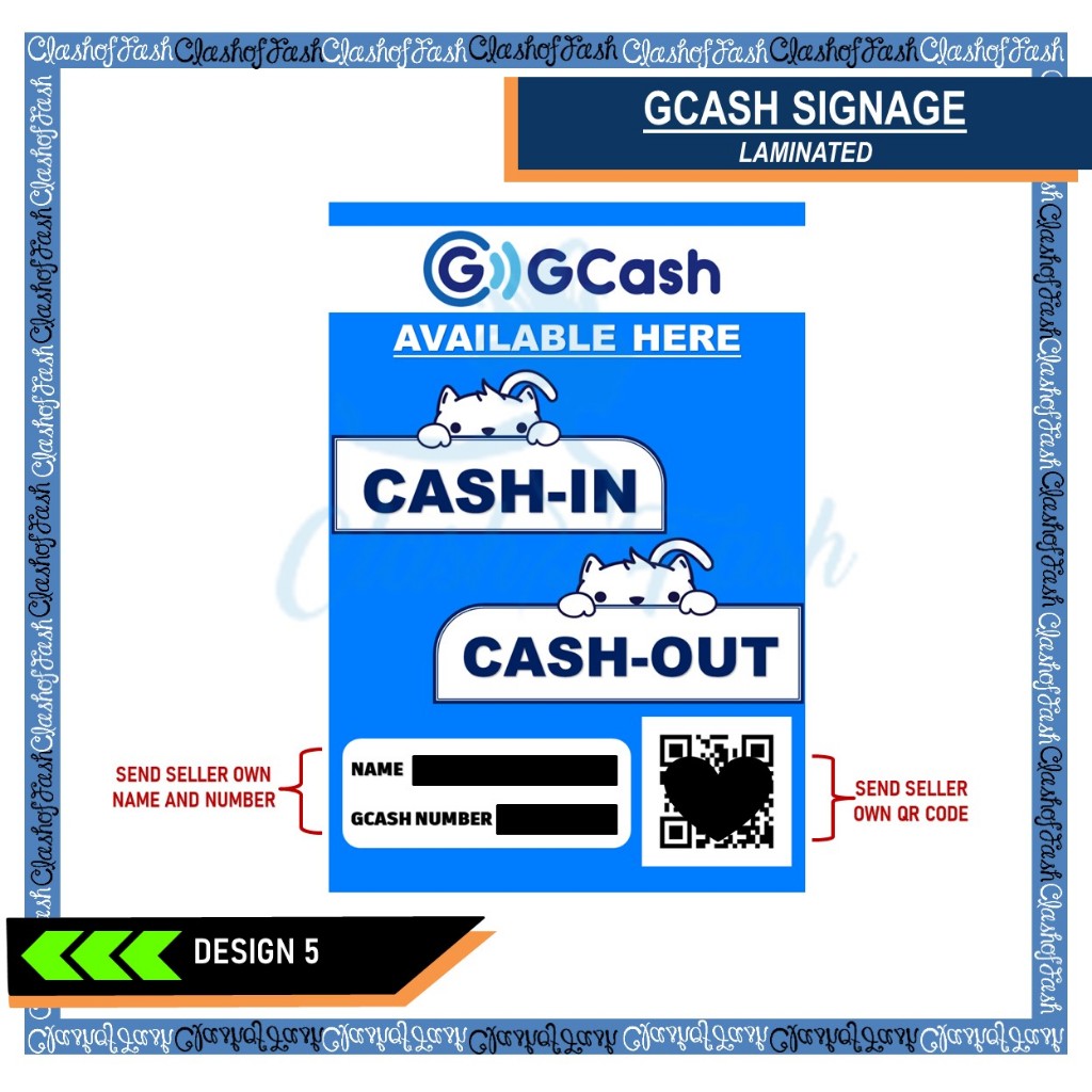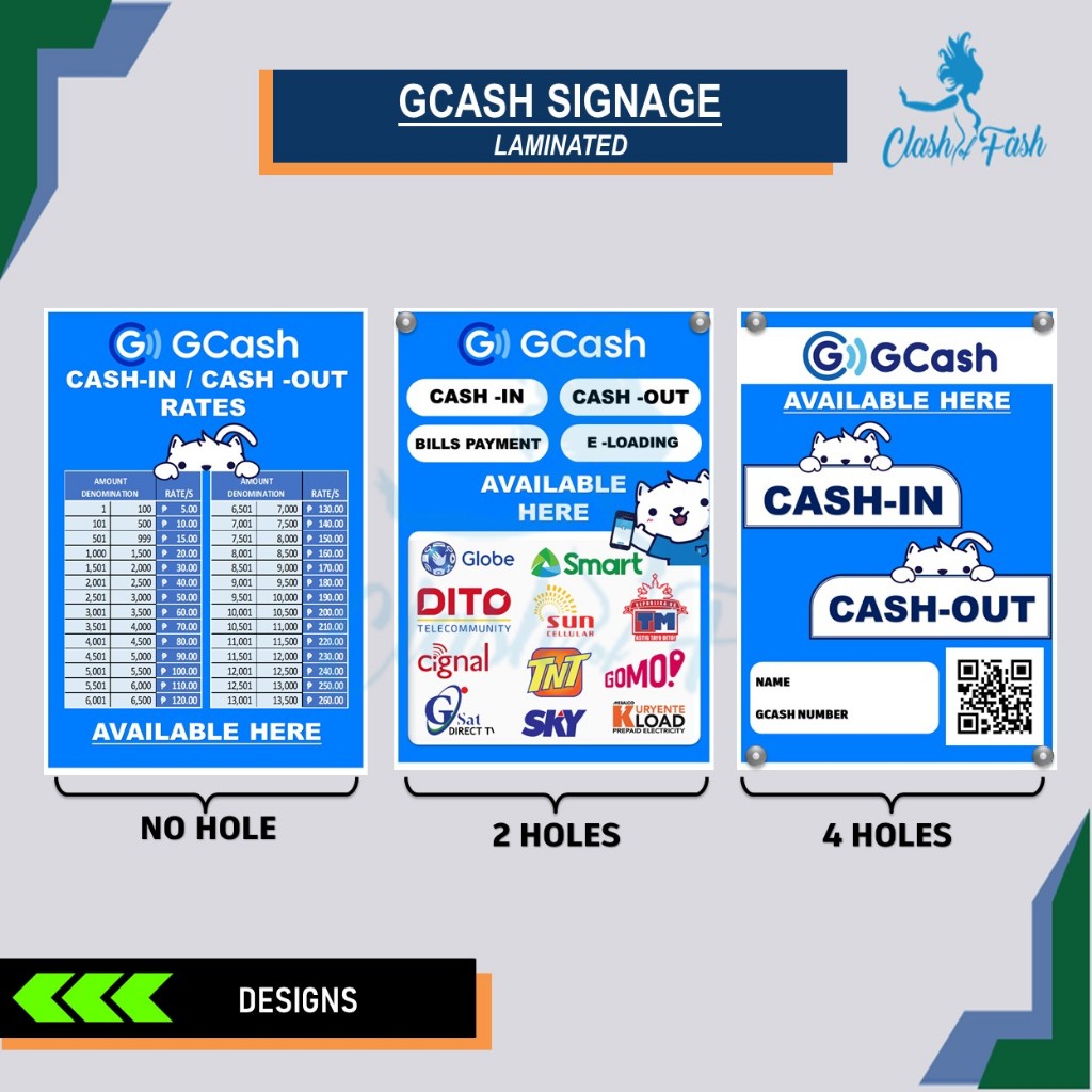GCASH CASH-IN CASH-OUT RATES LAMINATED SIGNAGE A4 (8"X11")