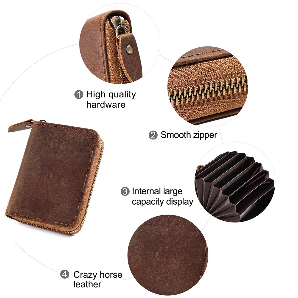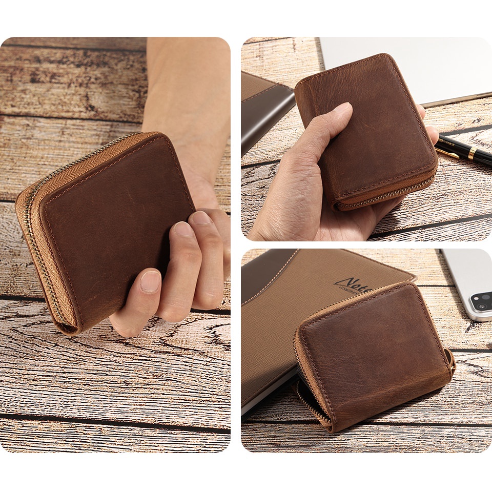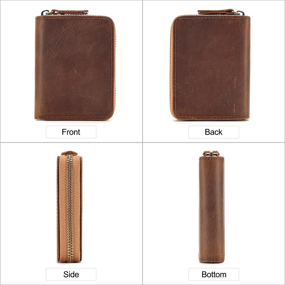 GENODERN RFID Card Holders for Men Real Leather Bank Card Holder Short Zipper Brown Coffee Organ Cards Wallet Coin Purse Men