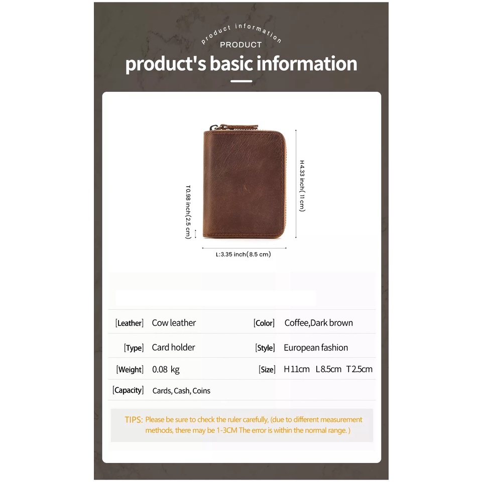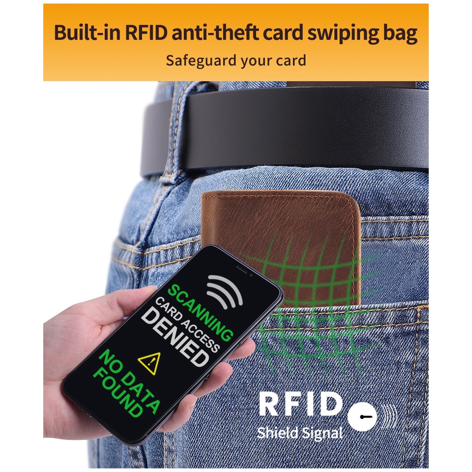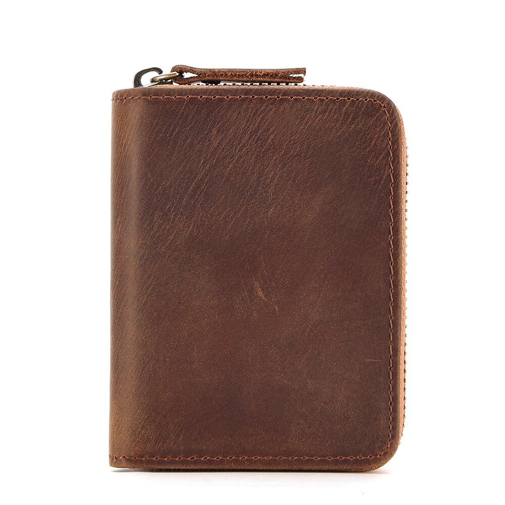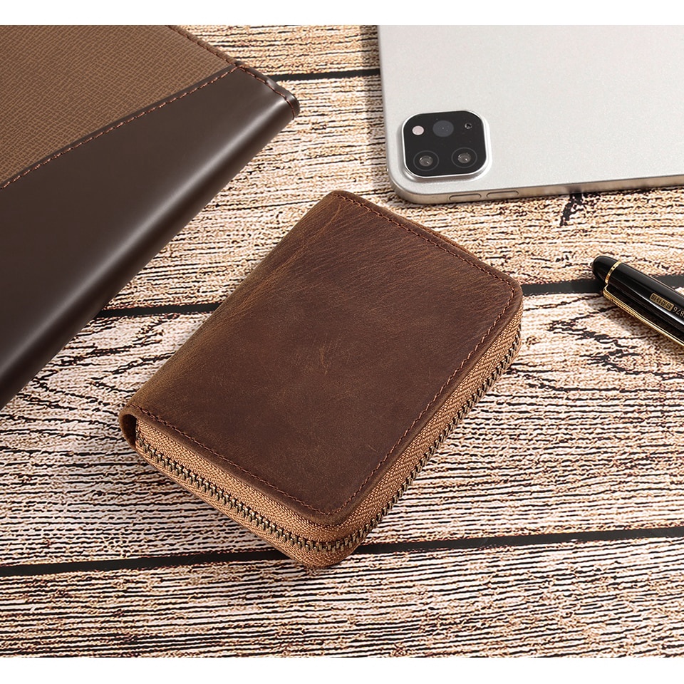 GENODERN RFID Card Holders for Men Real Leather Bank Card Holder Short Zipper Brown Coffee Organ Cards Wallet Coin Purse Men