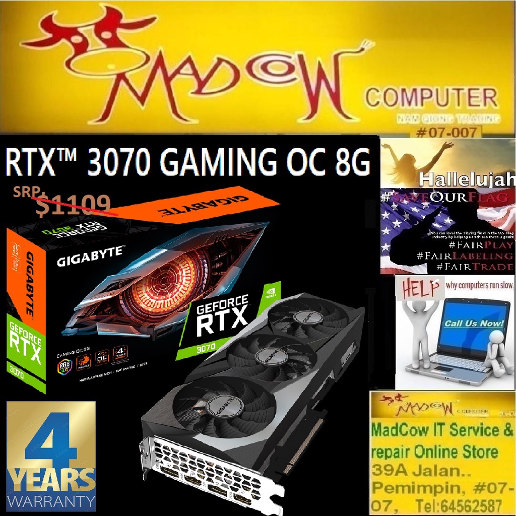 GIGABYTE RTX 3070 GAMING OC 8GB - NVIDIA GIGABYTE (4Y)