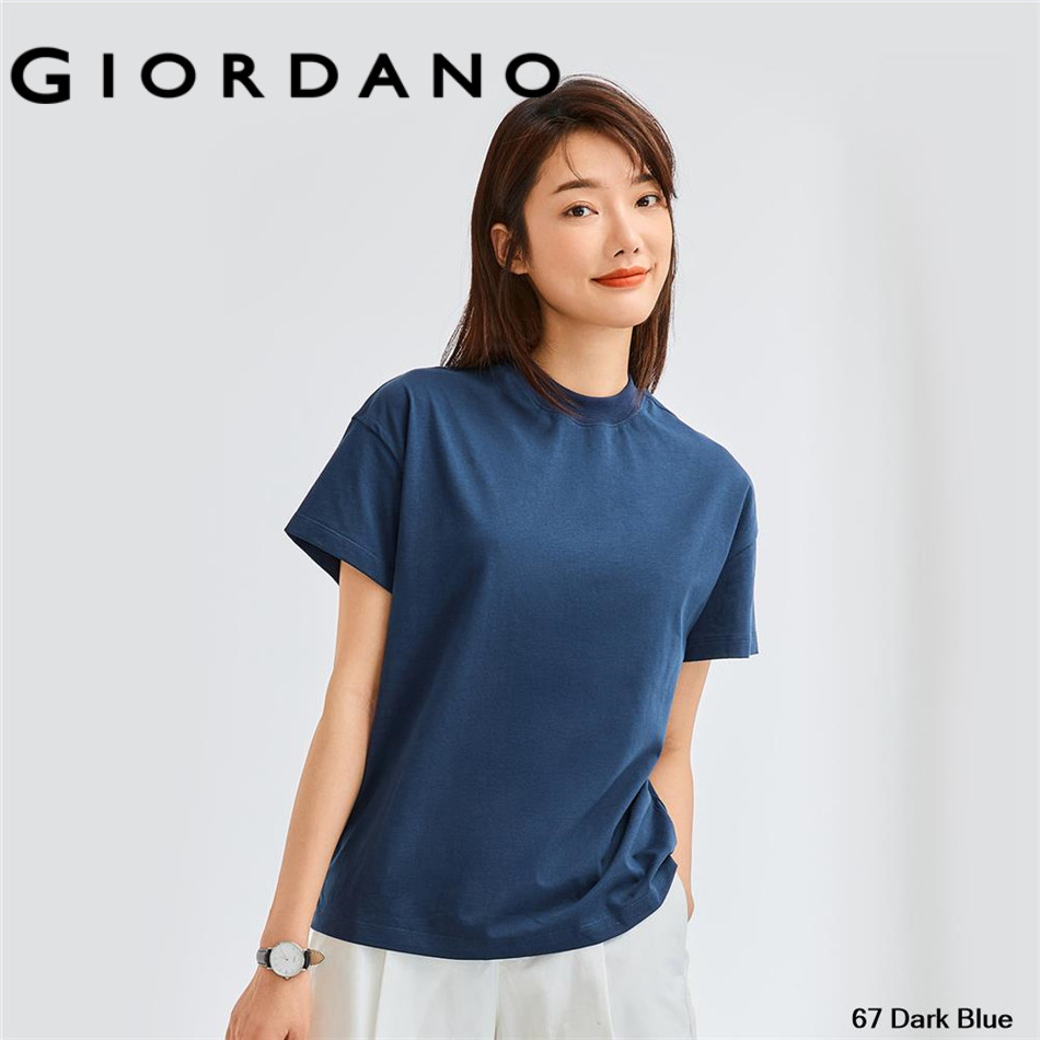 GIORDANO WOMEN Pure Cotton Solid Color Drop Shoulder Simple short-sleeve T Shirt 05322396