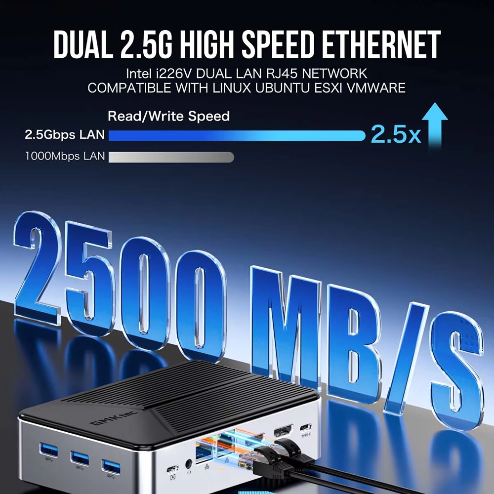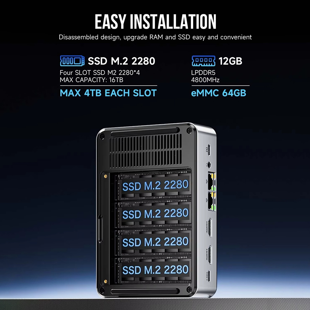 GMKtec Nucbox G9 MINI PC Intel N150 MINI NAS 12GB LPDDR5 64GB EMMC 4 Slots M.2 2280 SSD Windows 11 Pro Ubuntu System WIFI6 BT5.2 Triple Screen Pocket Gaming Computer