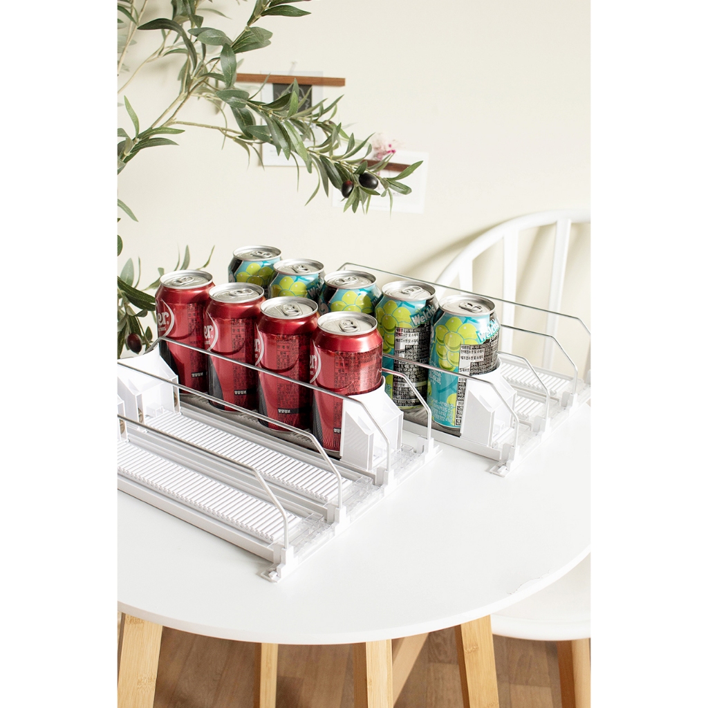 GOODSDECO Soda Can Dispenser for Refrigerator(2 size) - Rolling Can Organizer for Pantry, Drink Organizer for Fridge, Stackable Beverage Storage Holder (3 Rows, White)