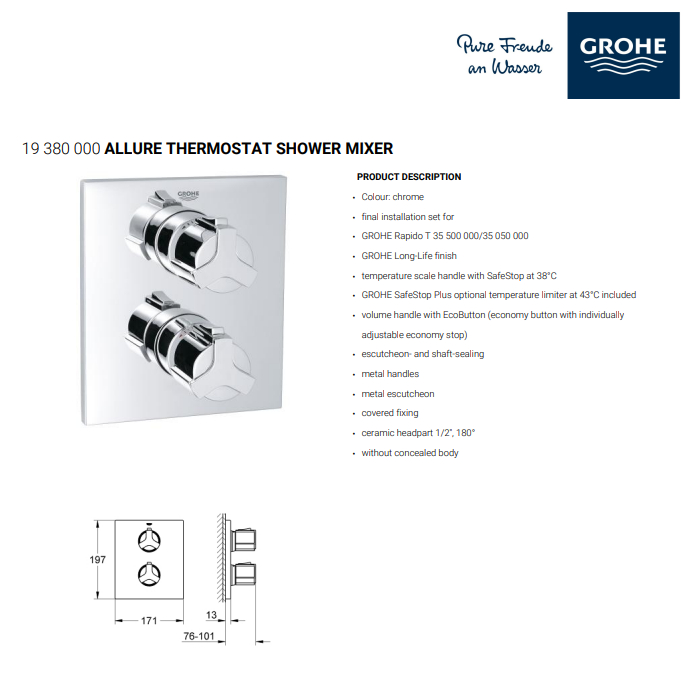 GROHE 19380000 ALLURE THERMOSTAT SHOWER MIXER
