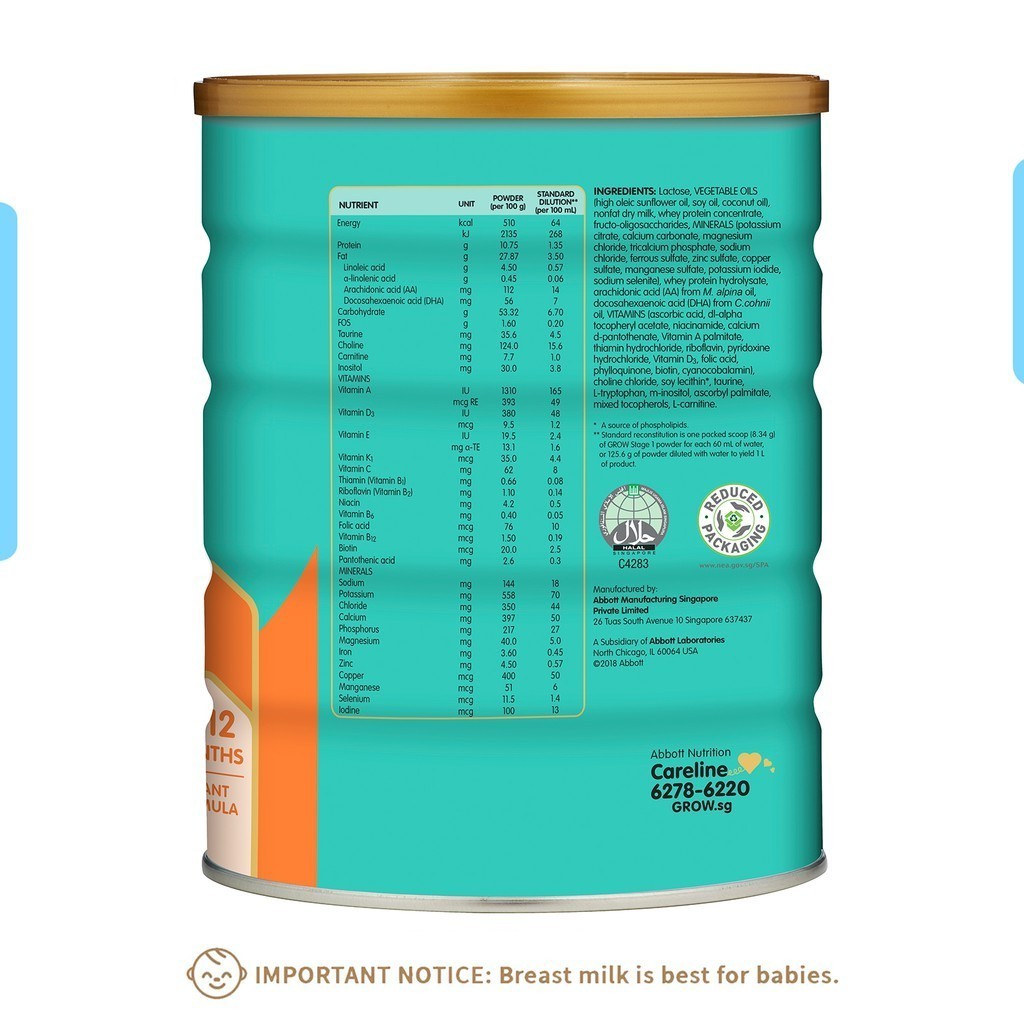 GROW Infant Milk Formula for Babies - Stage 1 (0 - 12 months) - 900g