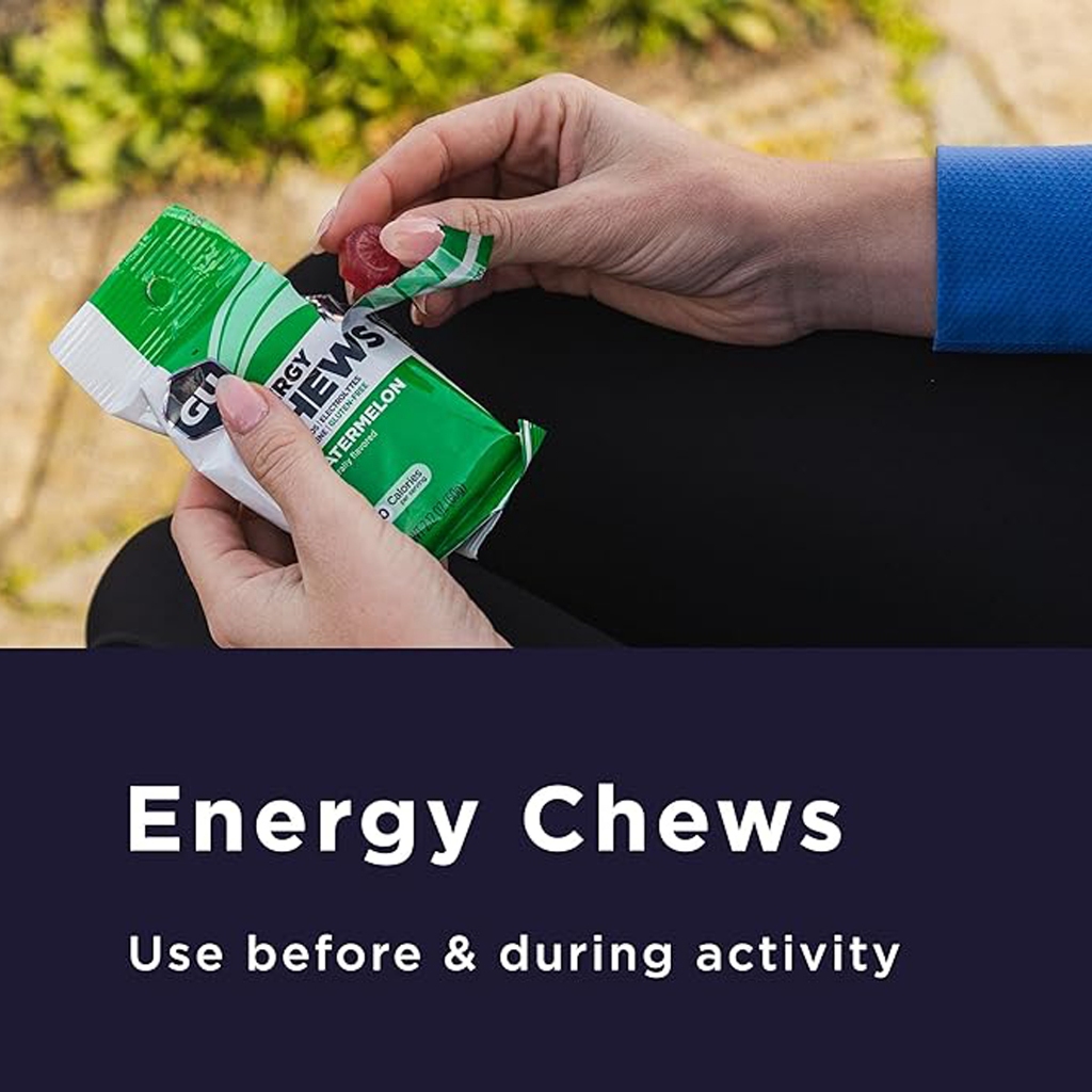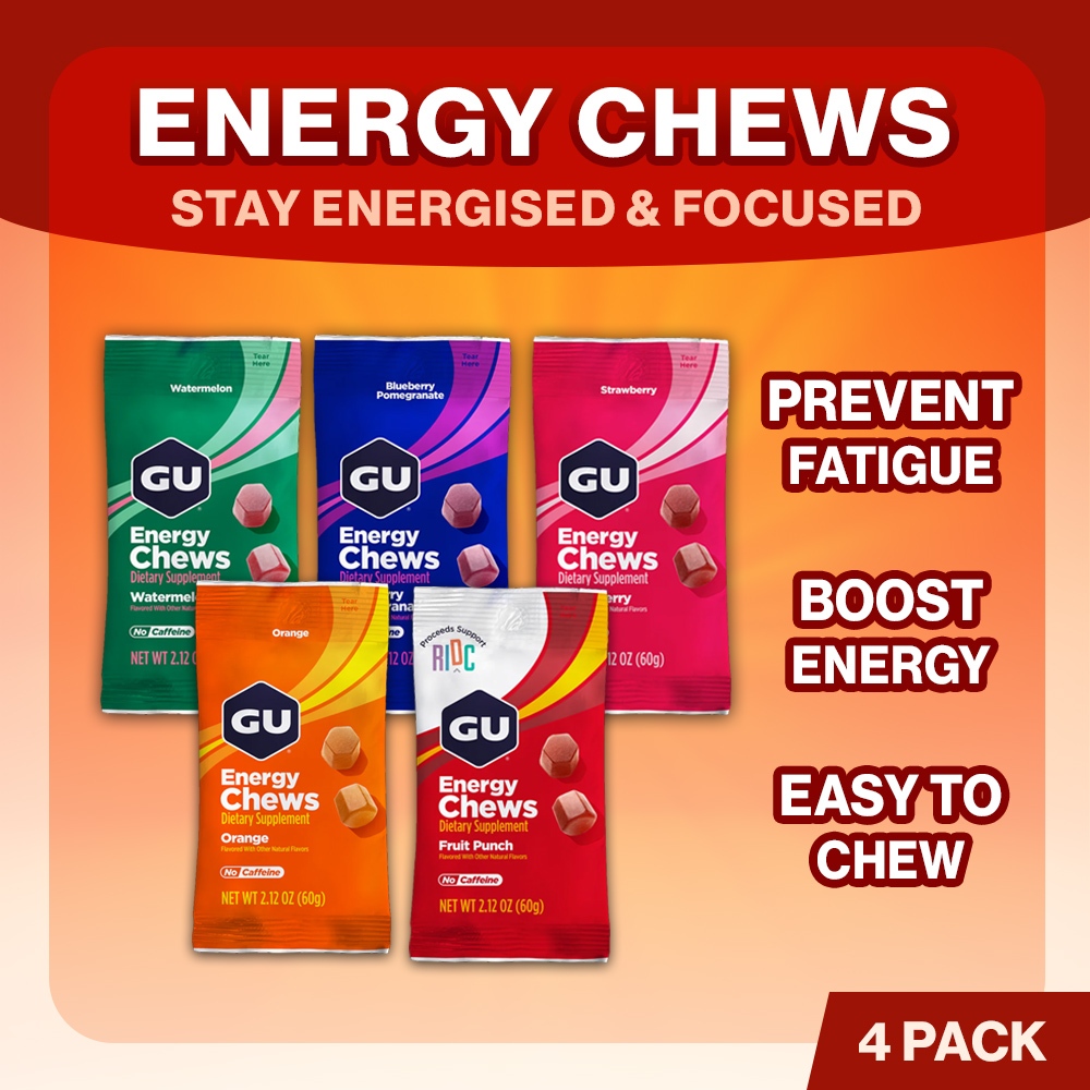 GU Energy Chews 4 Pack 8 Servings Gummies with Electrolytes Pre Workout Running Endurance Marathon