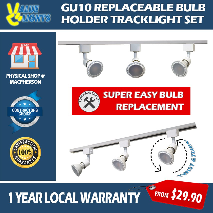 GU10 Bulb Holder Track Light Set Easy Replacement Low Maintenance Tracklight Spotlight Tri-Tone Option