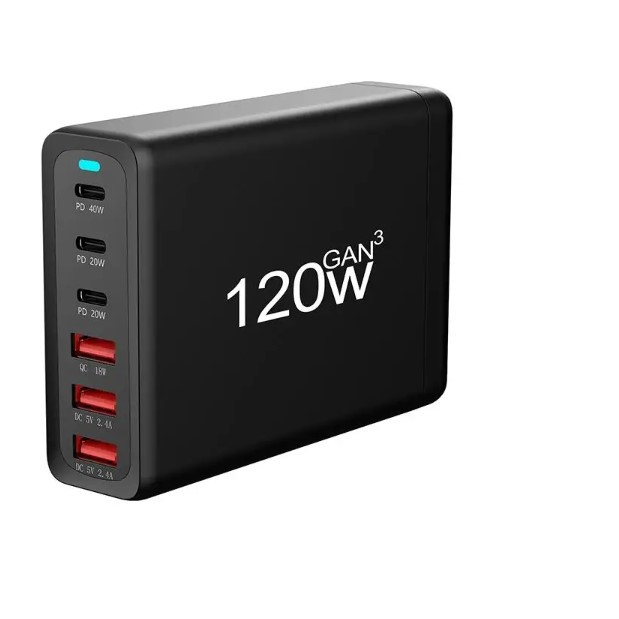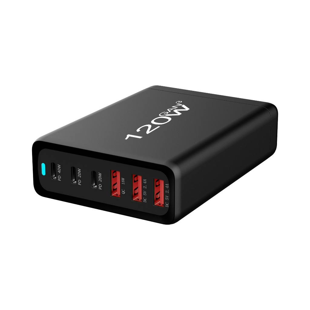 GaN 120W USB C Charging Station Mobile Phone Fast Charger 6-Port Portable USB-C Power Adapter