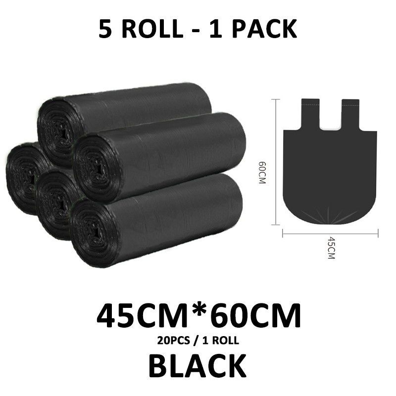 Garbage Bag Handle Disposable Trash Bags Waste Bin Rubbish Bags 100pcs 5 Rolls