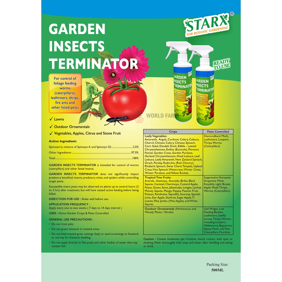 Garden Insects Terminator, Spinosad Pesticide / Insecticide Spray, 500ml