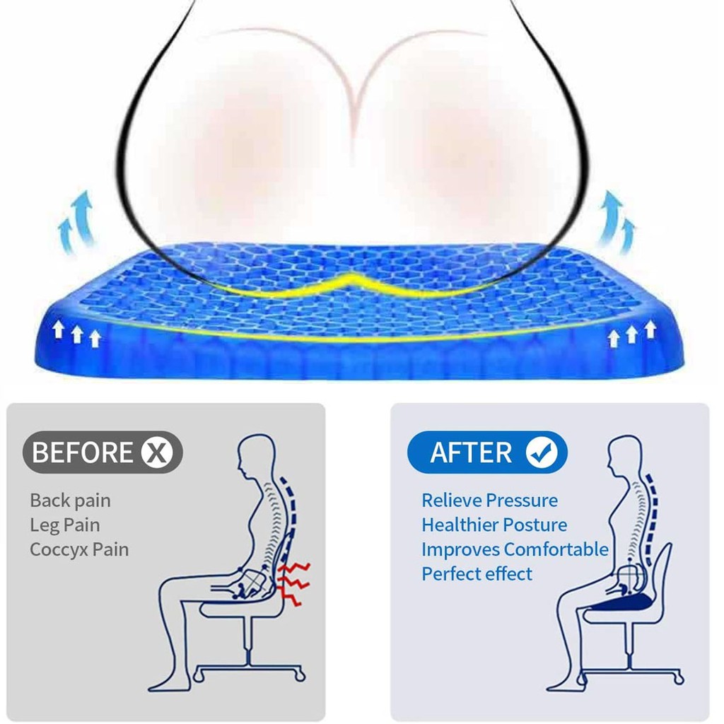Gel Seat Cushion, Breathable Relieve Pain Elastic Cushion Pressure Relief Honeycomb Egg Seat Cushion Ice Pad 1.2KG