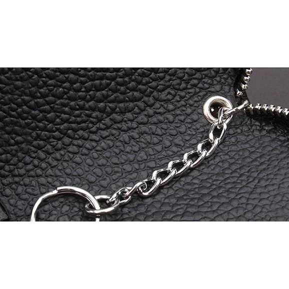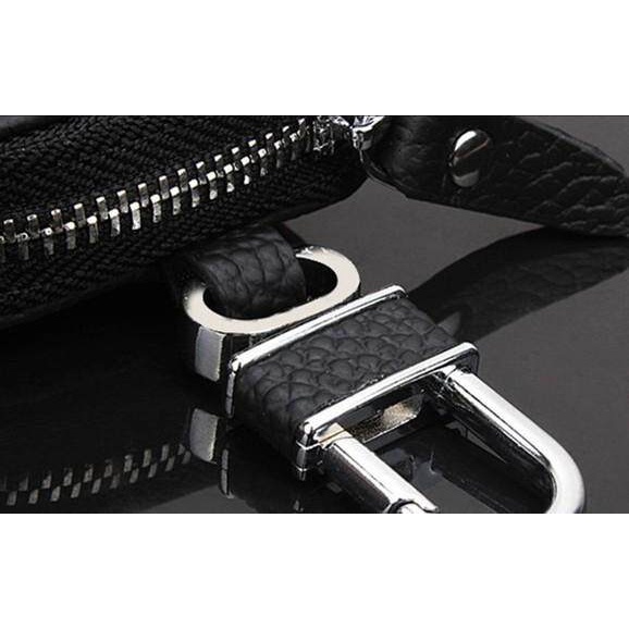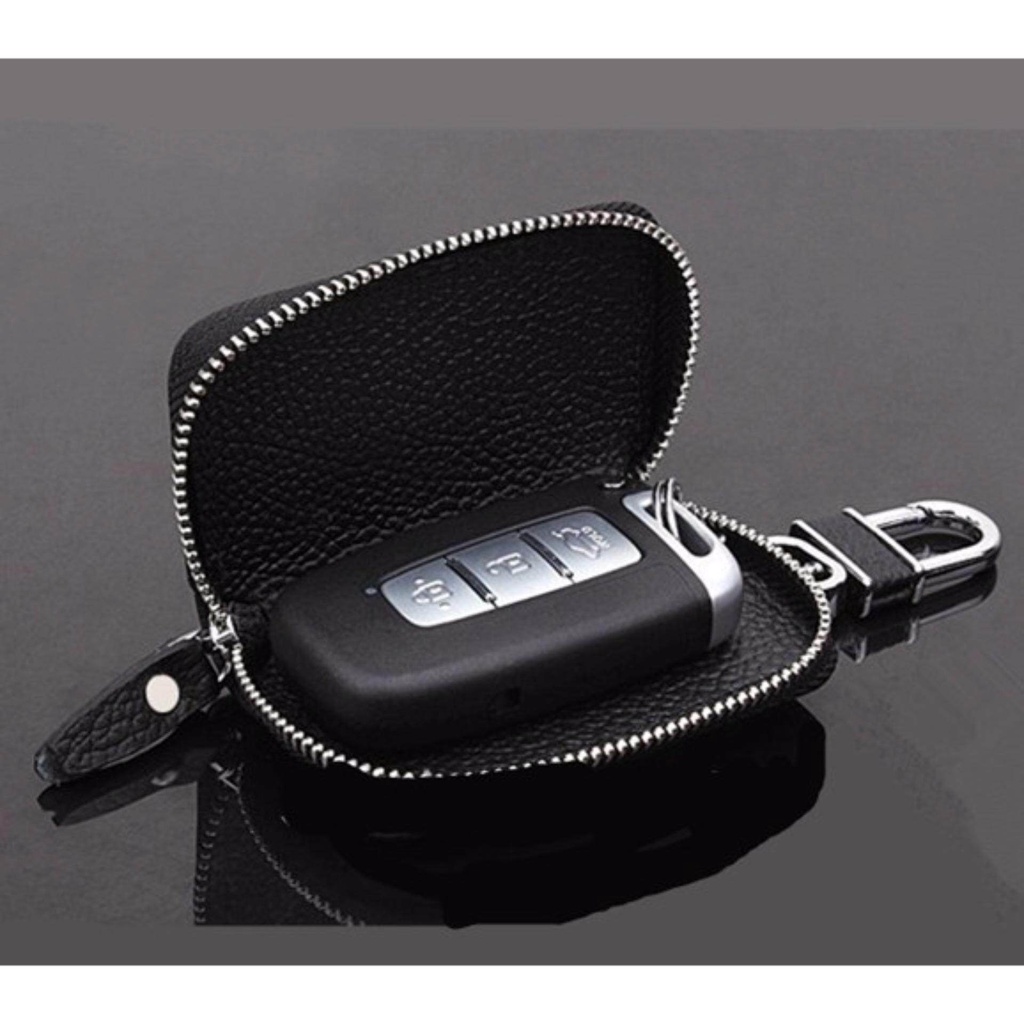 Genuine Leather Car Key Cards Holder Purse Pouch Organizer Zipper Key Wallet Case Bag (Black)