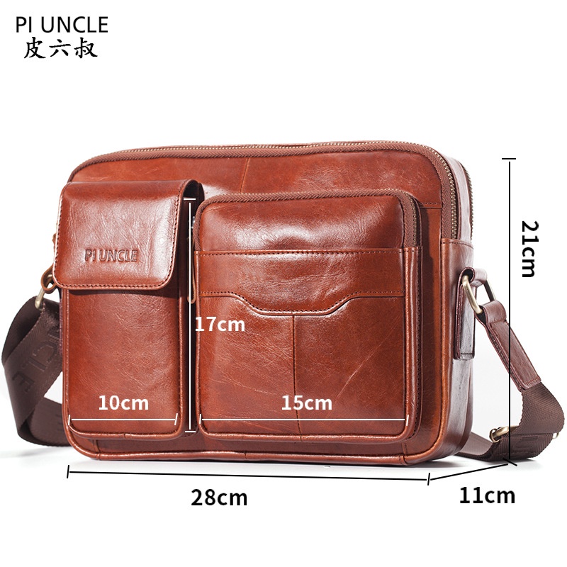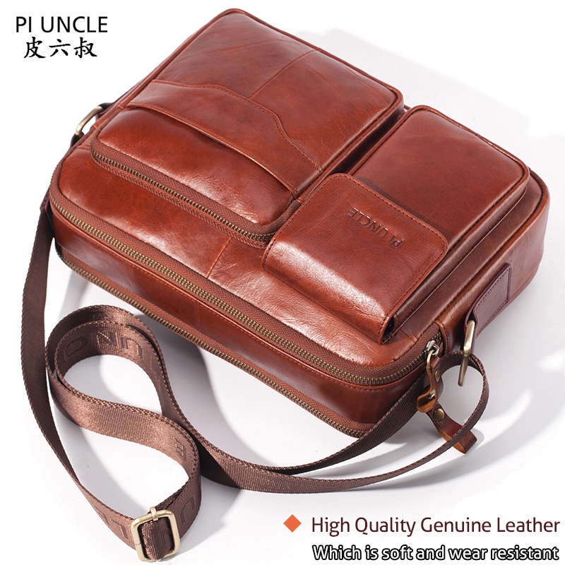 Genuine Leather Men's Messenger Bag Retro Cowhide Leather Briefcase