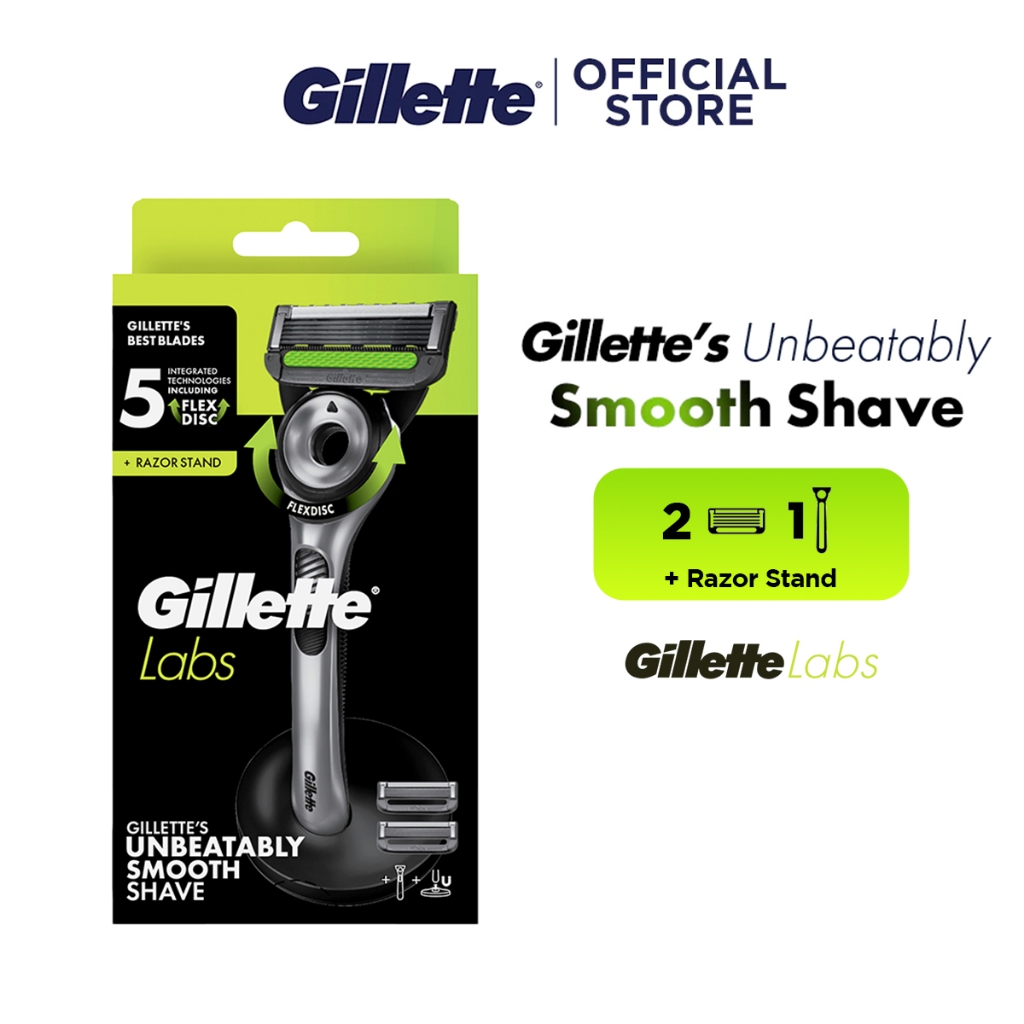 Gillette Labs with Exfoliating Bar Razor 1 Handle + 2 Razor Blade Refills / Cartridges + Stand