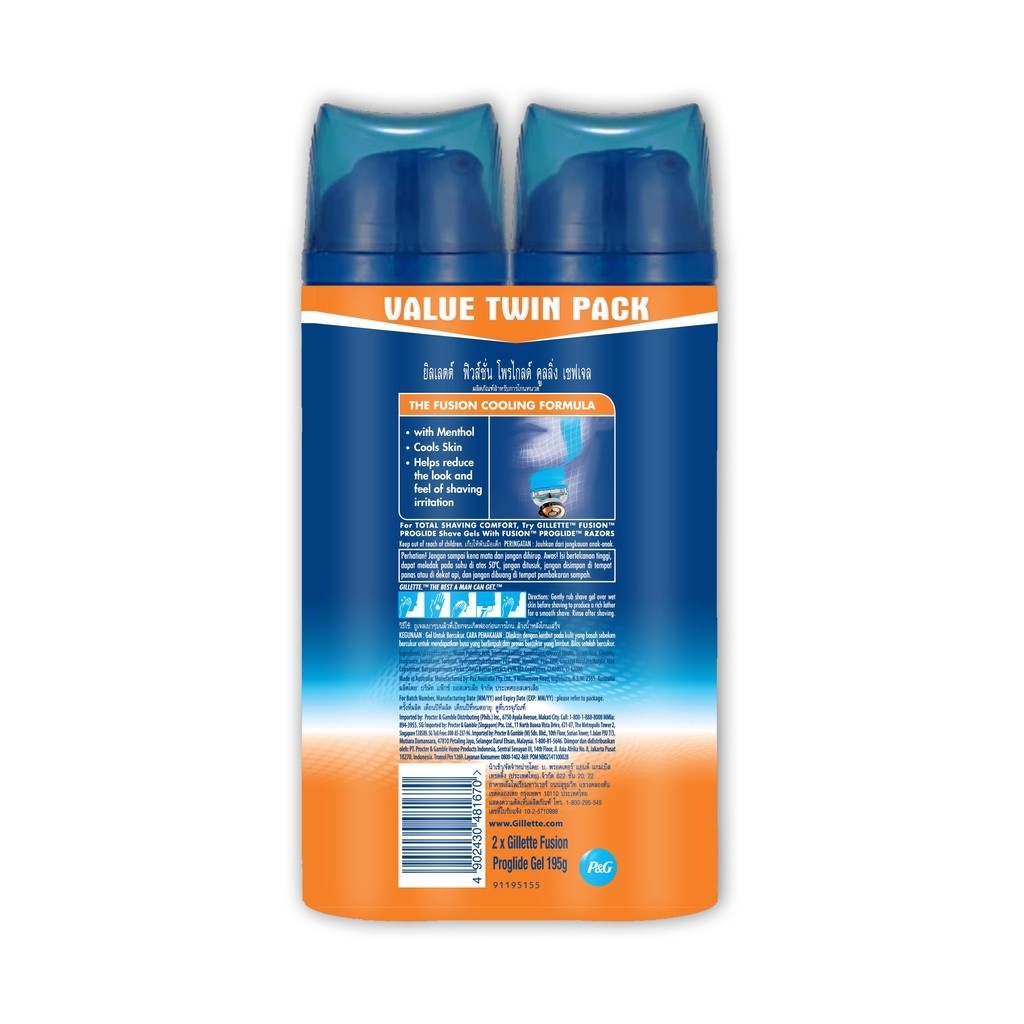 Gillette Shaving Cream Fusion ProGlide Cooling Moisturizing Foam Gel Twin Pack 195g