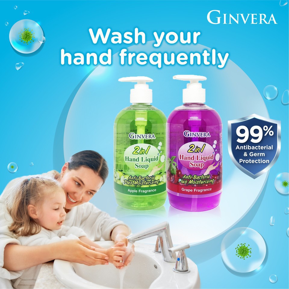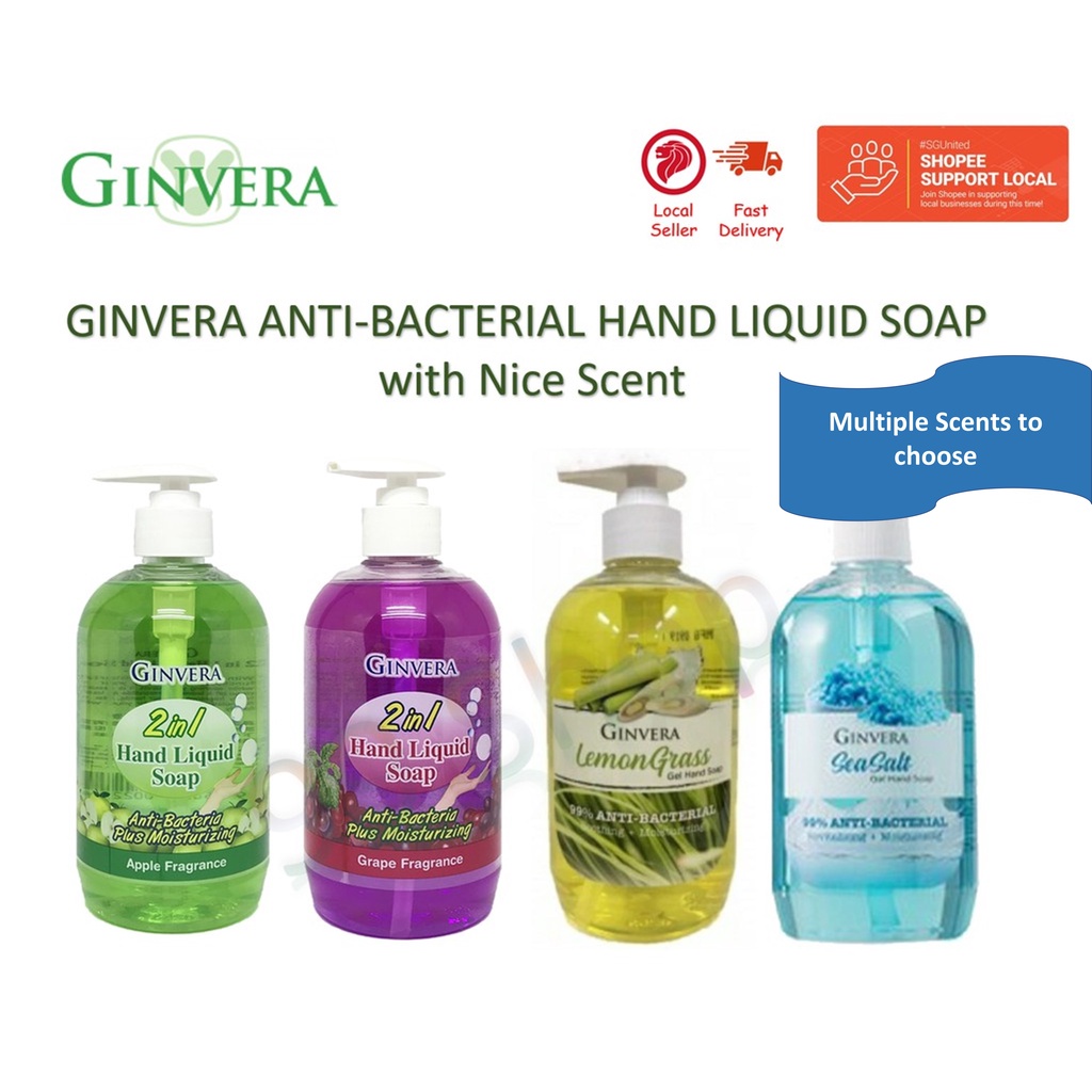 Ginvera Liquid Hand Soap/Handwash Lemongrass Sea Salt Apple Grape Fragrance 1x500ml Antibacterial Hand Wash