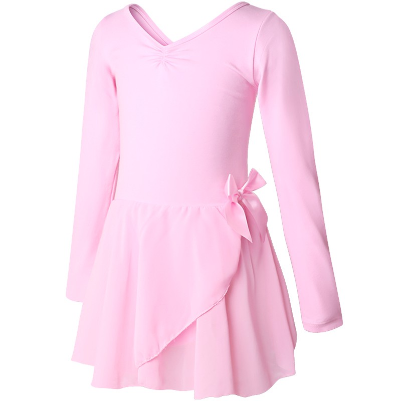 Girls Ballet Clothing Dance Wear Ballet Bowknot Dress Long Sleeve Gymnastics Leotard With Chiffon Skirts