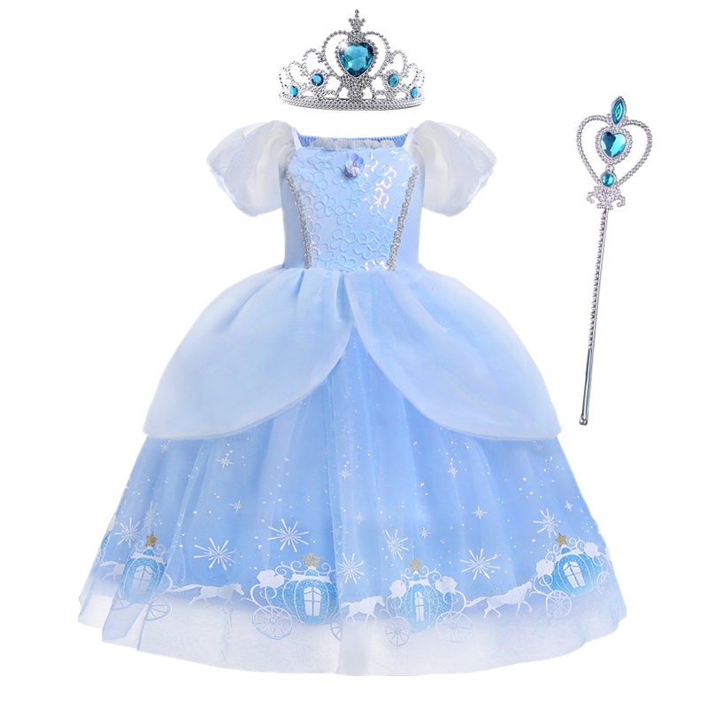 Girls Blue Princess Dress Cinderella Costume Fancy Girls Dress Long Party Dresses for Girls Birthday Dress Halloween Cosplay Costume