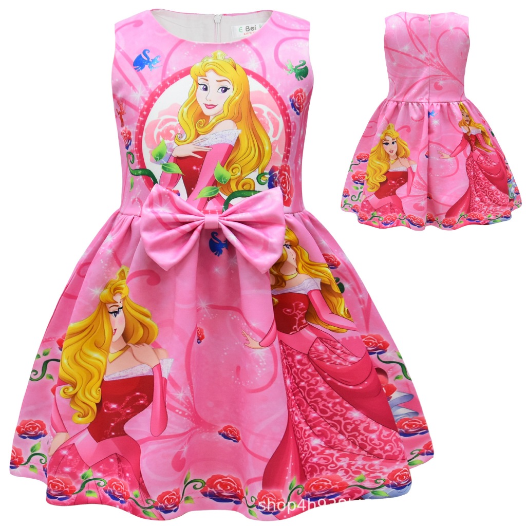 Girls Disney Snow White Cinderella Ariel Aurora Belle Jasmine Tiana Sofia Princess Dress Kids Birthday Party Bow tie Zipper Dresses