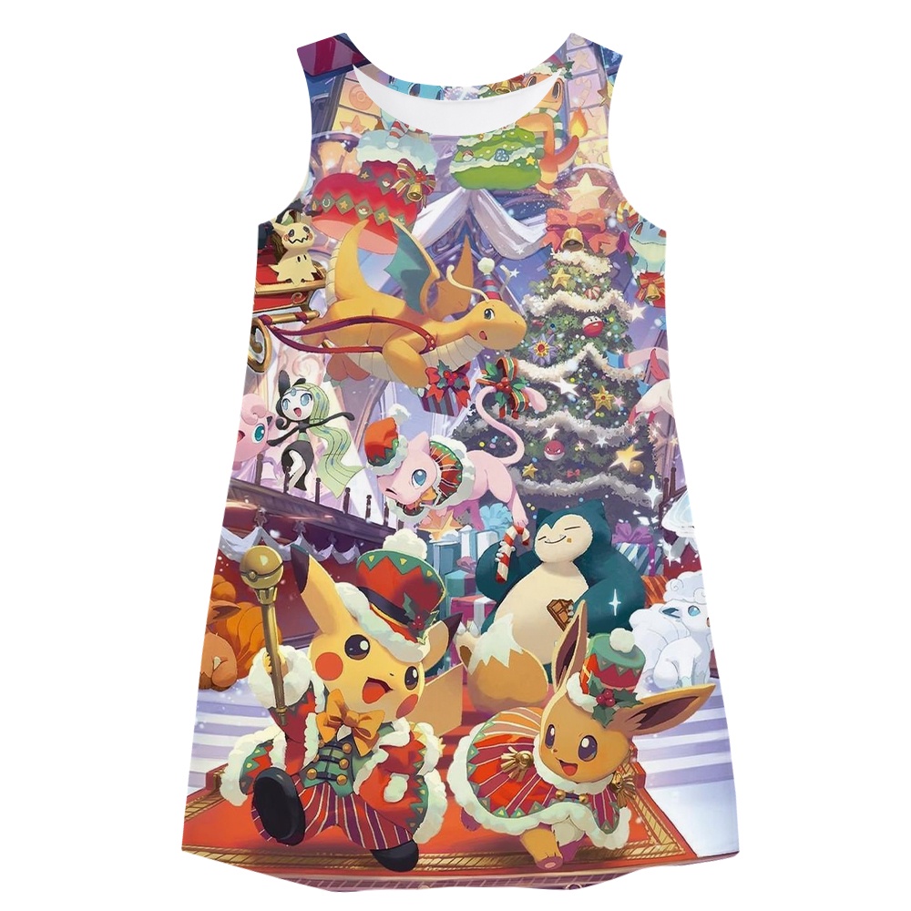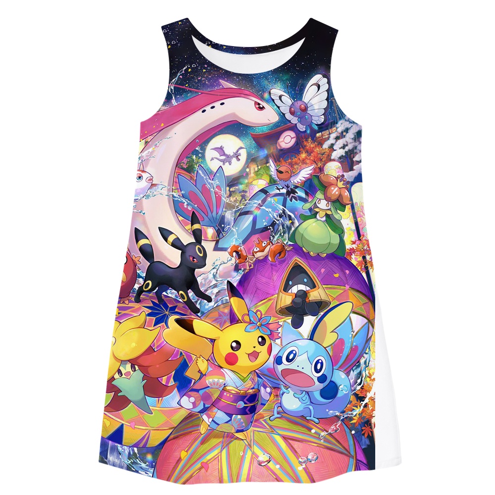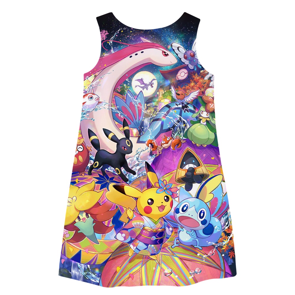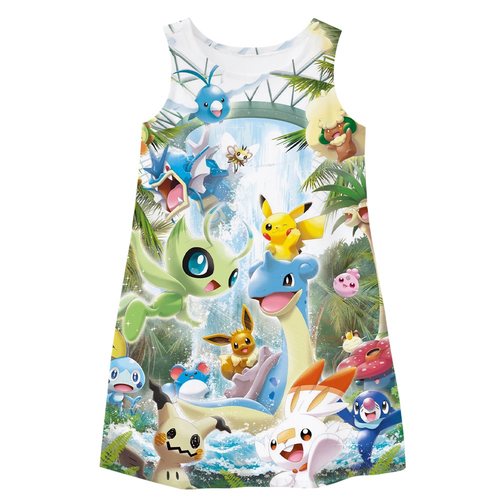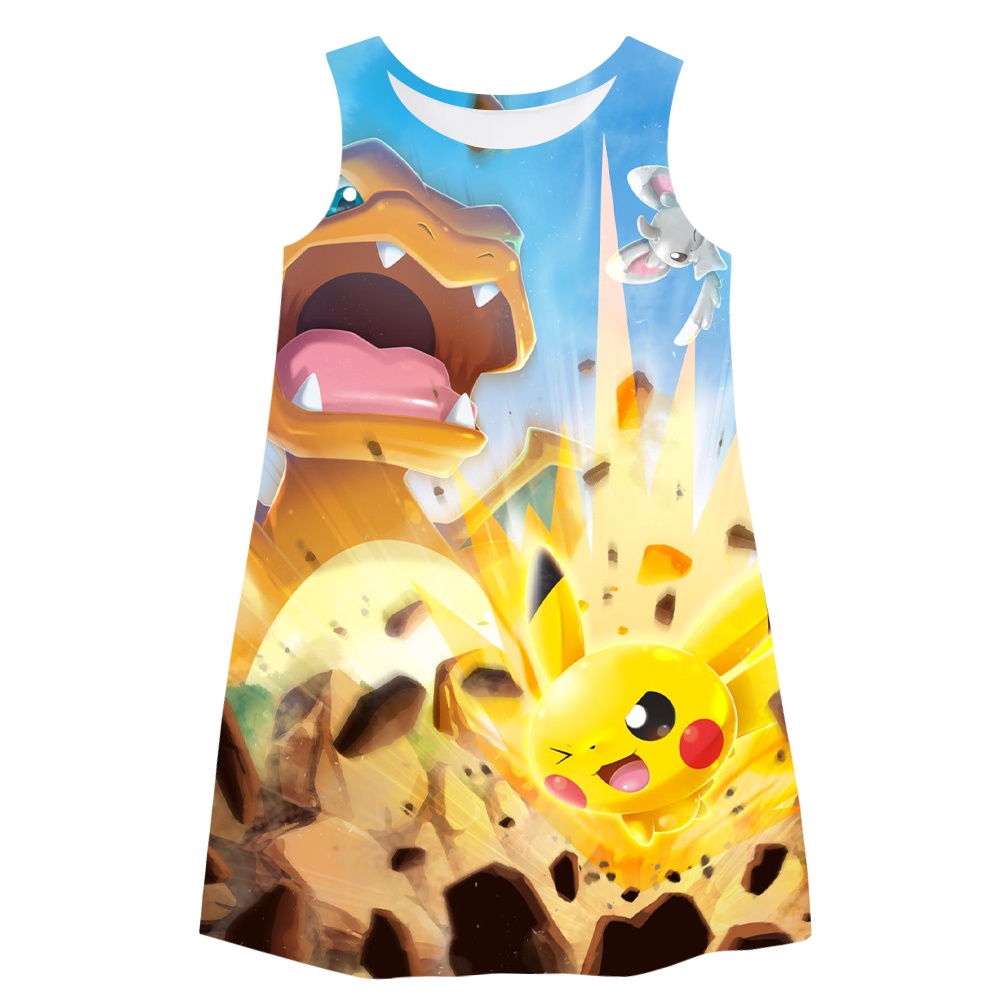Girls Fashion Dress Pokemon 3d Print Sleeveless Dress Pikachu Jeni Turtle Charizard Children's Baby Summer Soft and Comfortable