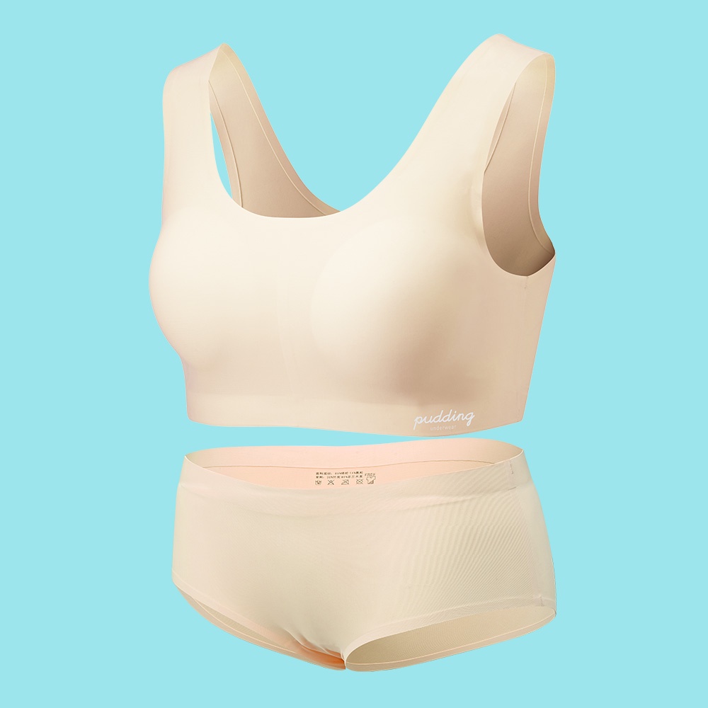 Girls underwear Pudding Underwear Junior Pad Detachable Bra and Panties Set Skin Color Teens Seamless Sports Strapless