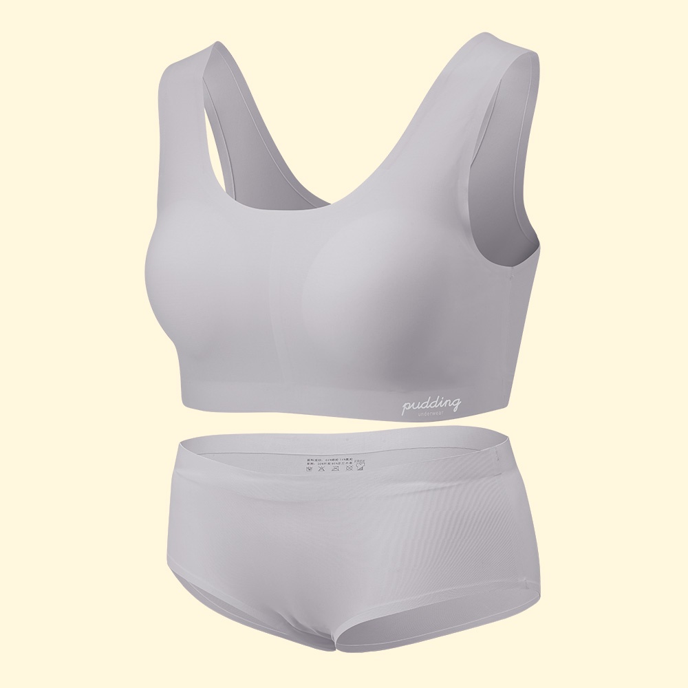 Girls underwear Pudding Underwear Junior Pad Detachable Bra and Panties set Grey Color Teens Seamless Sports Strapless