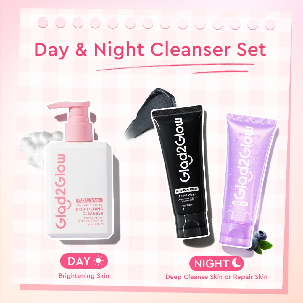 Glad2Glow Cleanser Combo Milk Amino Acid Cleanser Face Wash/ Centella Salicylic Acid Acne/Blueberry Low PH/Volcanic Soil