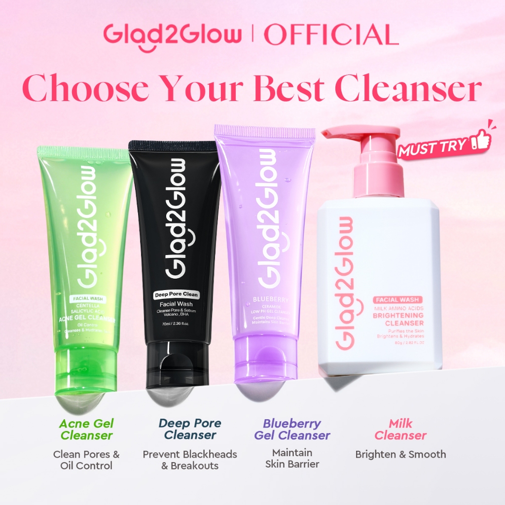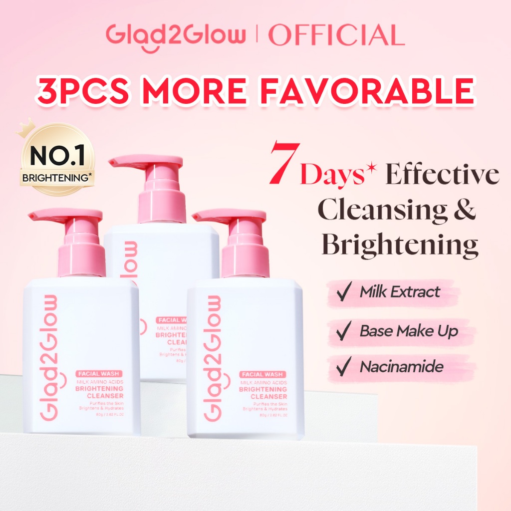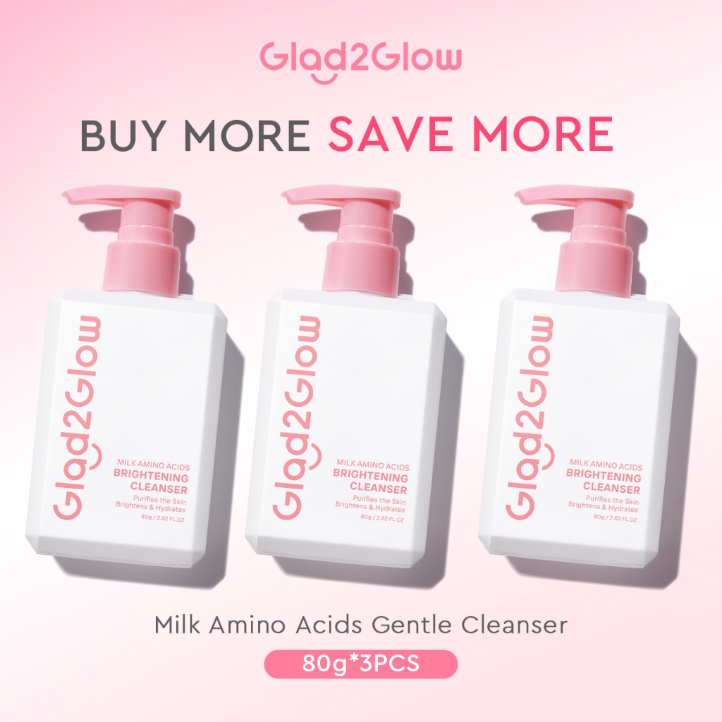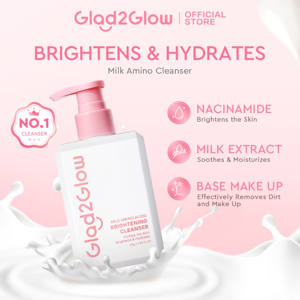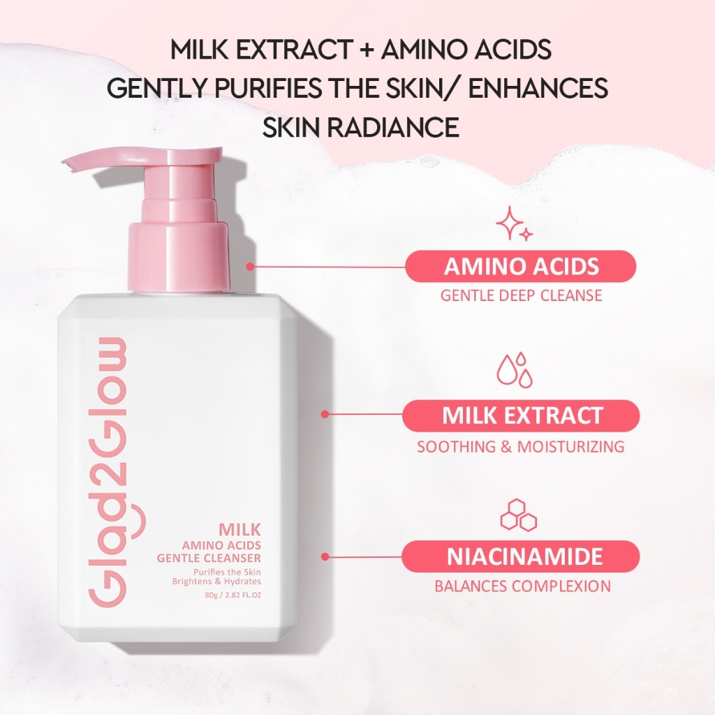 Glad2Glow Milk Amino Acid Gentle Cleanser Face Wash 80ml-Brighten, Calm, Hydrating Skin & Clean Dirt,For All Skin Type