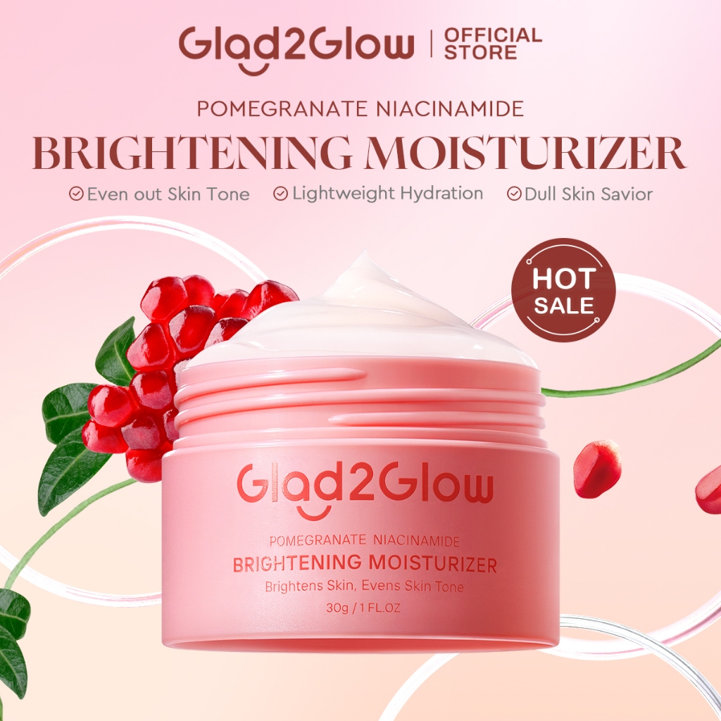 Glad2Glow Pmomegranate Niacinamide Brightening Moisturizer Whitening Cream For Face, For Dull & Sensitive Skin美白面霜[G2G]