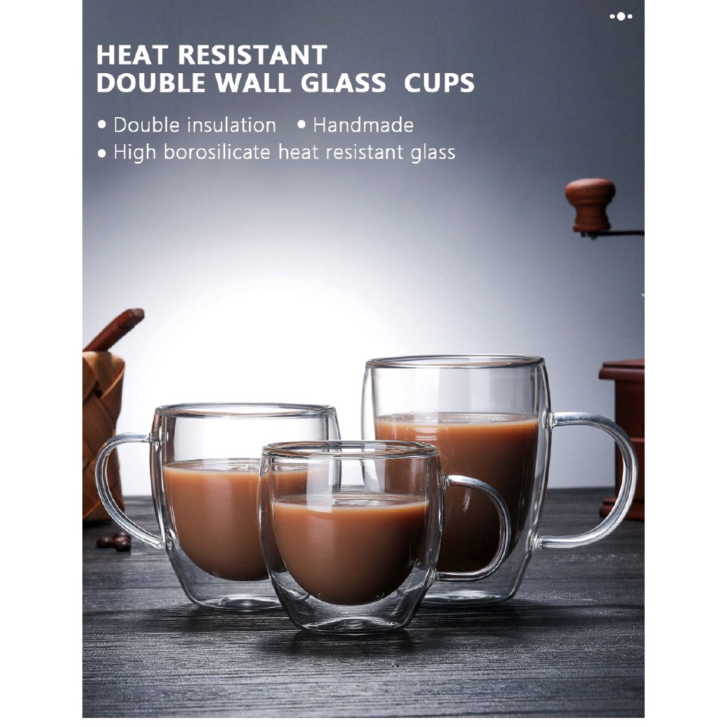 Heat Resistant Double Walls Glass Coffee Tea Cups Coffee Mugs With The Handle Mugs