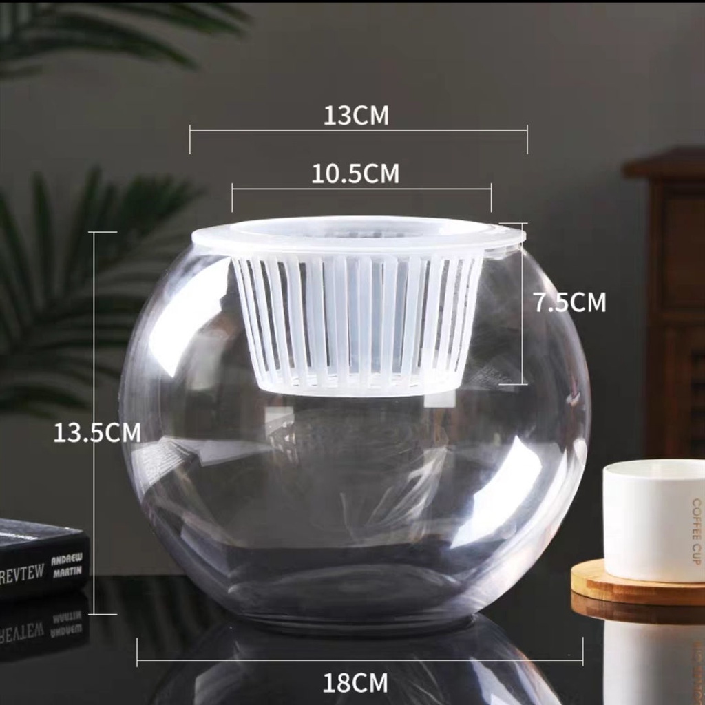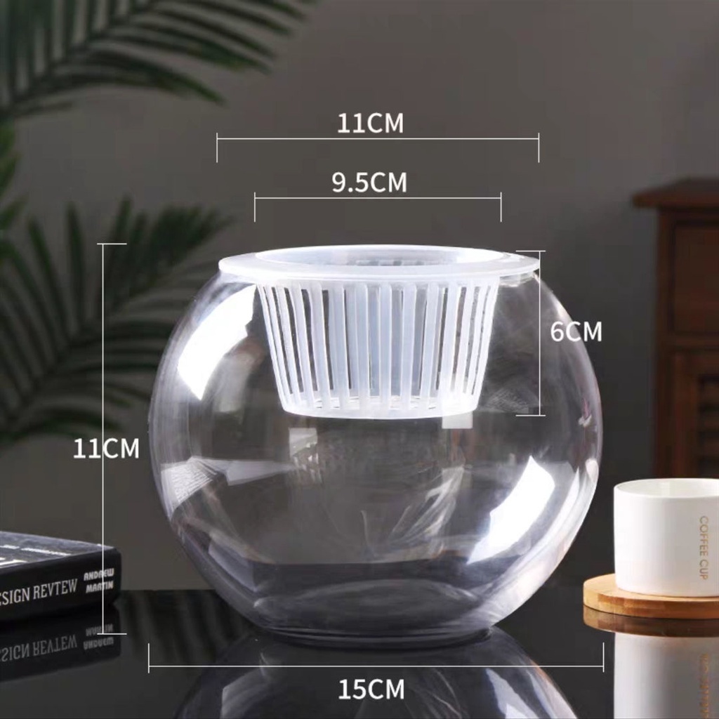 Glass Ball Flower Pot Hydroponic Green Dill Plant Transparent Large Glass Vase Desktop Water Fish Tank Vessel Container/Watering Pot / Automatic Water Absorption Plant Pot / Clear