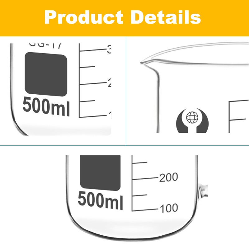 Glass Beaker with Handle 50-1000ml Borosilicate Glass Graduated Beaker Scale for Laboratory