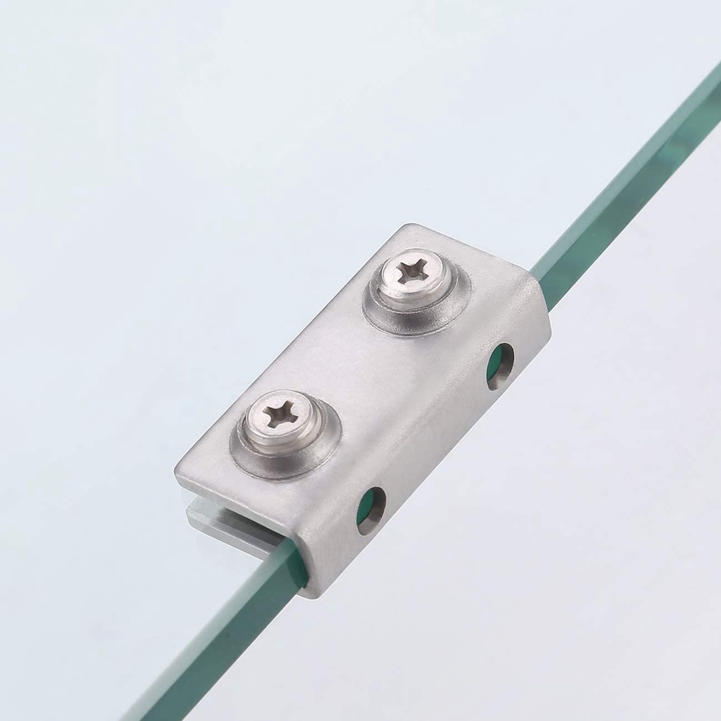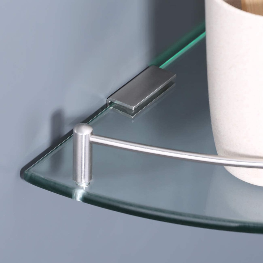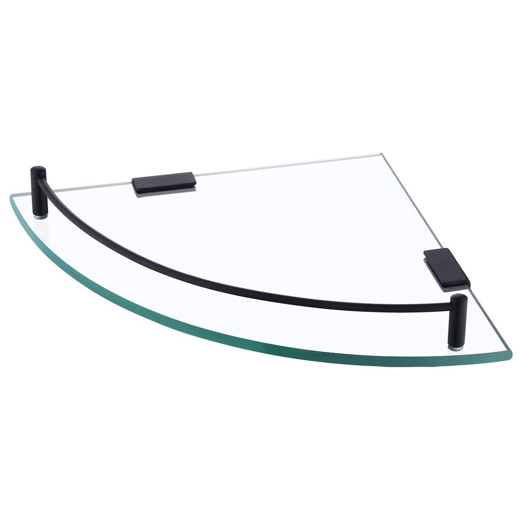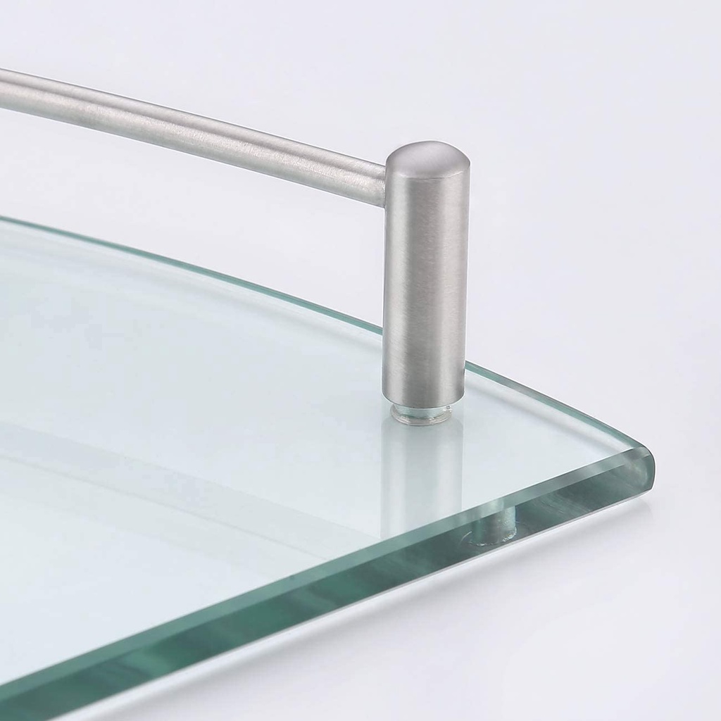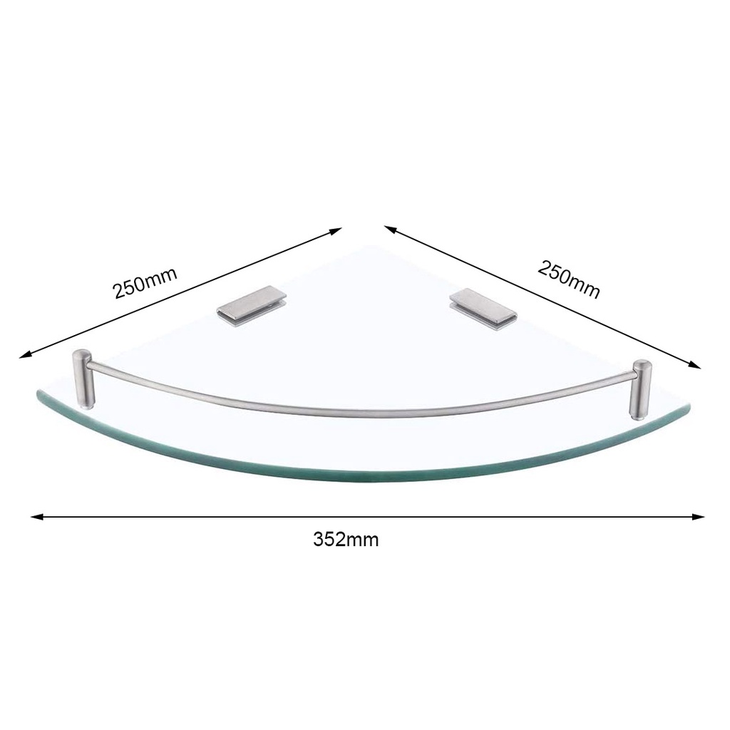 Glass Corner Shelf Bathroom Shower Shelf Tempered Glass with Rail Wall Mount Bracket
