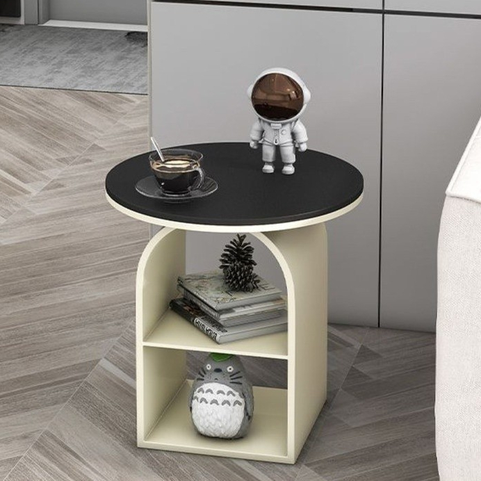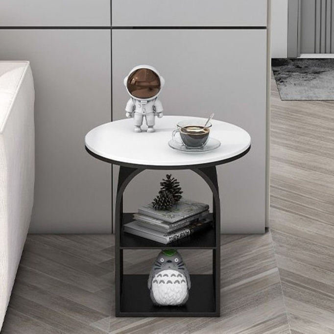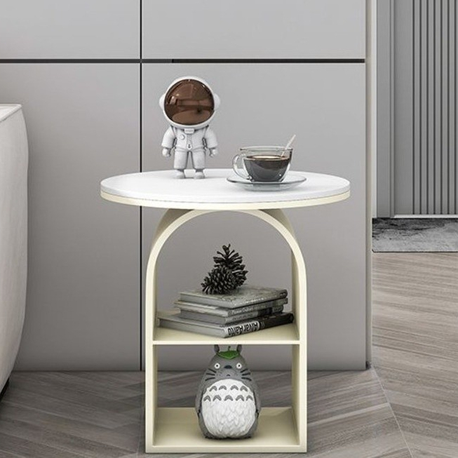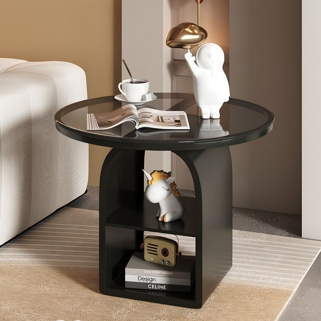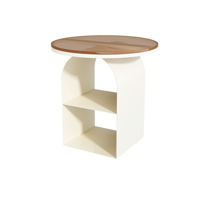 Side Table Glass Simple Small Table Round Bedside Table Double-Layer Side Table Living Room