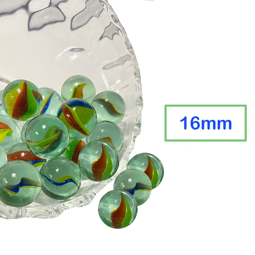 Glass marbles 11mm / 16mm [1 packet 90pc Green Marbles / 50 White Marbles ] | Guli 16mm / 11mm