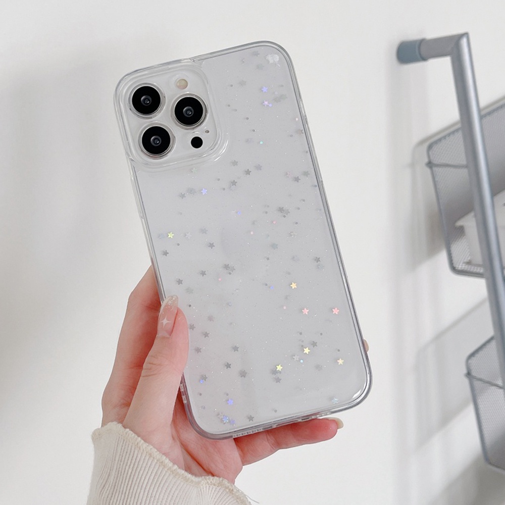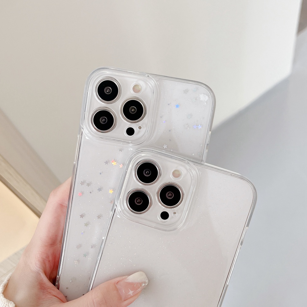 Glitter Sequin Bling Stars Phone Case For iPhone 16 15 14 13 11 12 17 Pro Max Air XR X XS 7 8 Plus SE 2020 Soft Silicone Camera Protection Shell