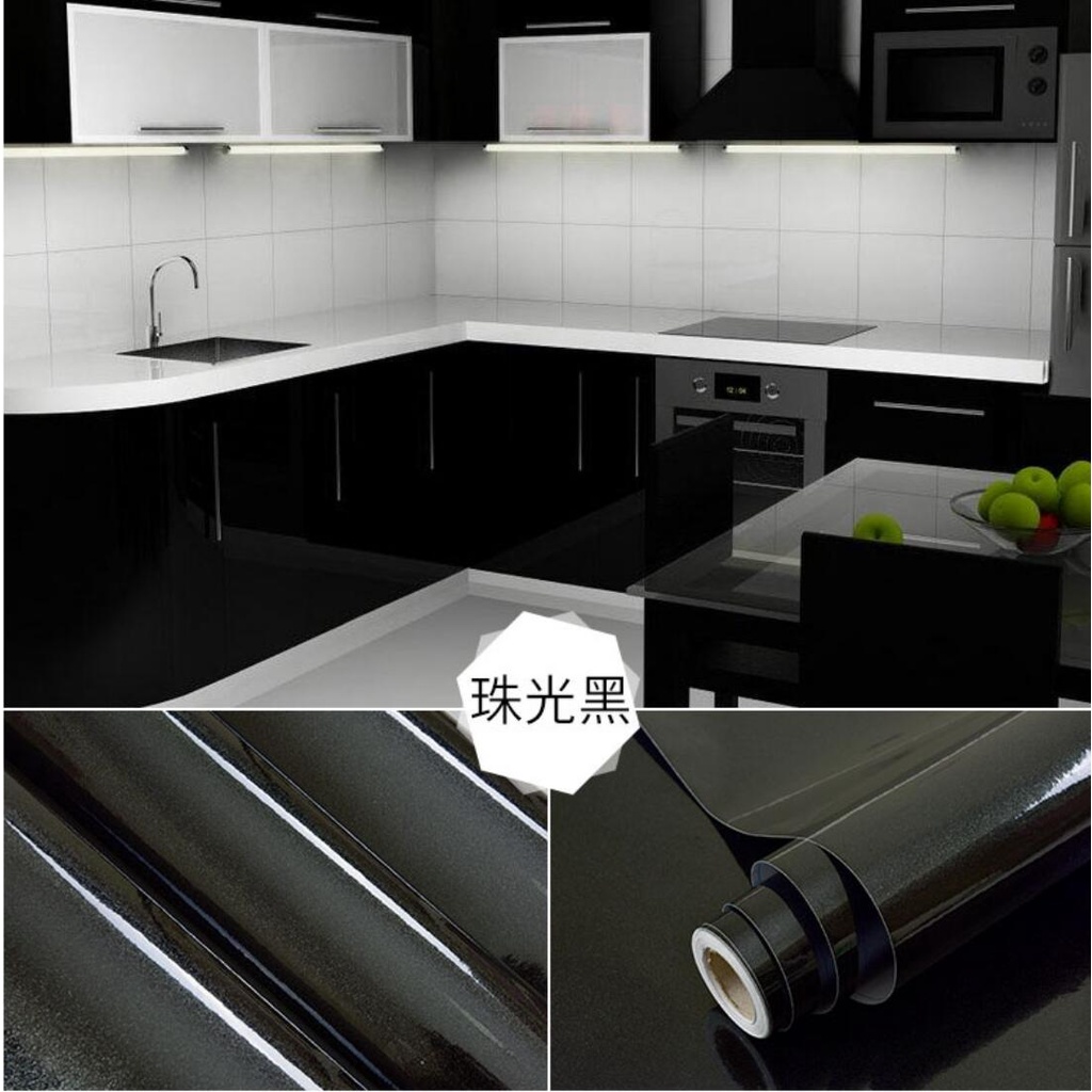 Glossy Shiny Black Wallpaper Furniture Kitchen Waterproof Self-adhesive Cabinet Sticker 60cm*3m