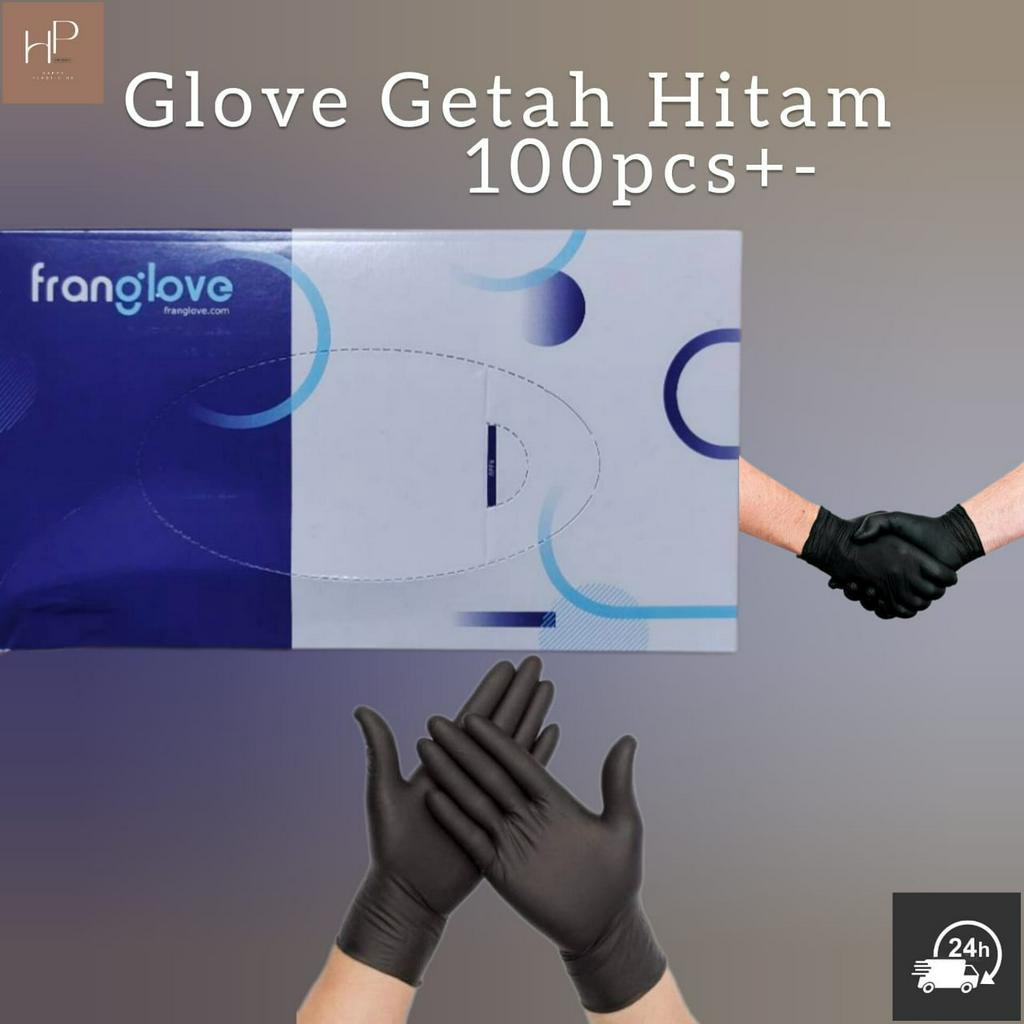 Glove RUBBER/Gloves RUBBER DISPOSABLE/NITRILE DISPOSABLE GLOVE - 100pcs IN 1 BOX Black