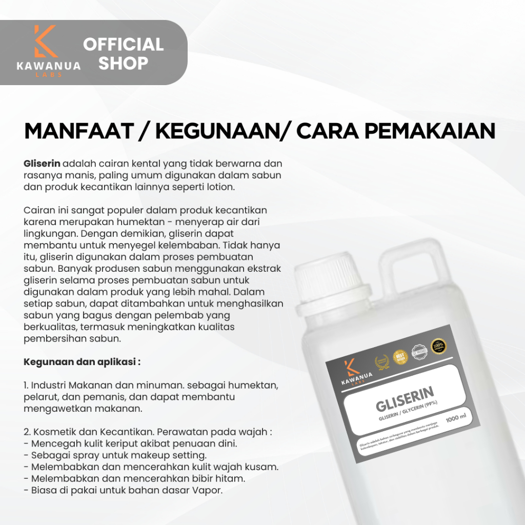 Glycerin Glycerin Glycerin USP Grade PREMIUM 100% / Glycerin USP Grade /Glycerol Grade 100% USPpure ecocerol original Food Grade HALAL (1 Liter & 500ml)