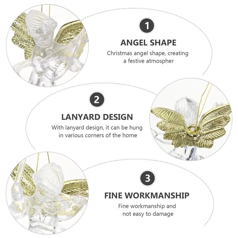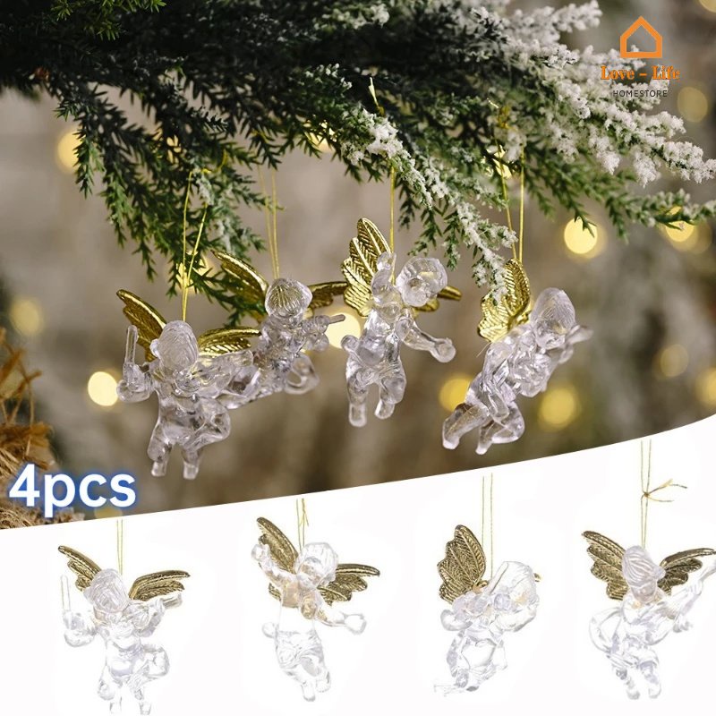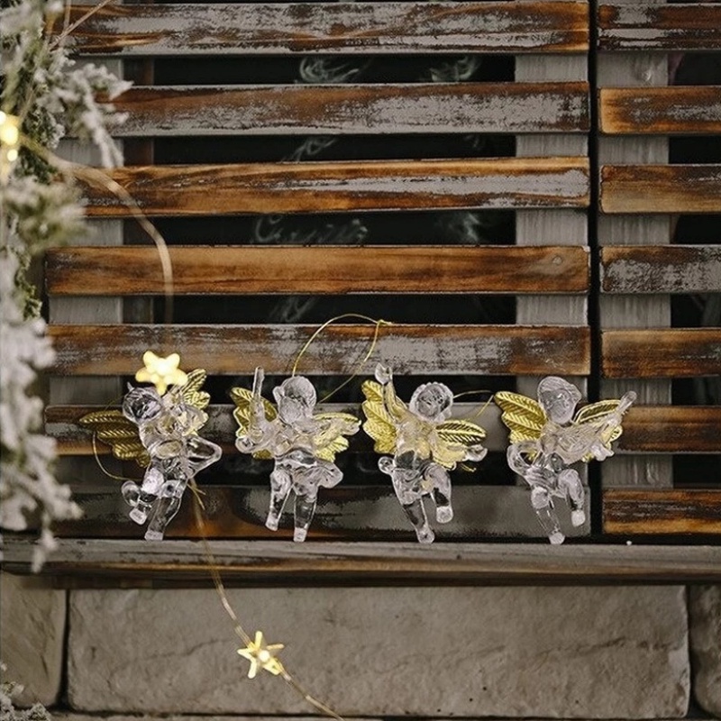 Gold Wings Transparent Little Angel Christmas Tree Ornament/ Lovely Angel Hanging Pendant Christmas Party Decoration Supplies