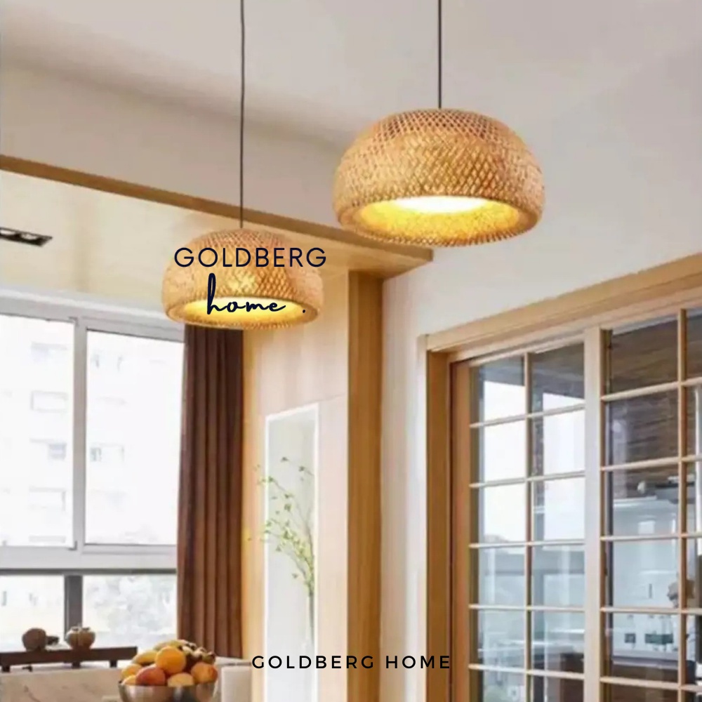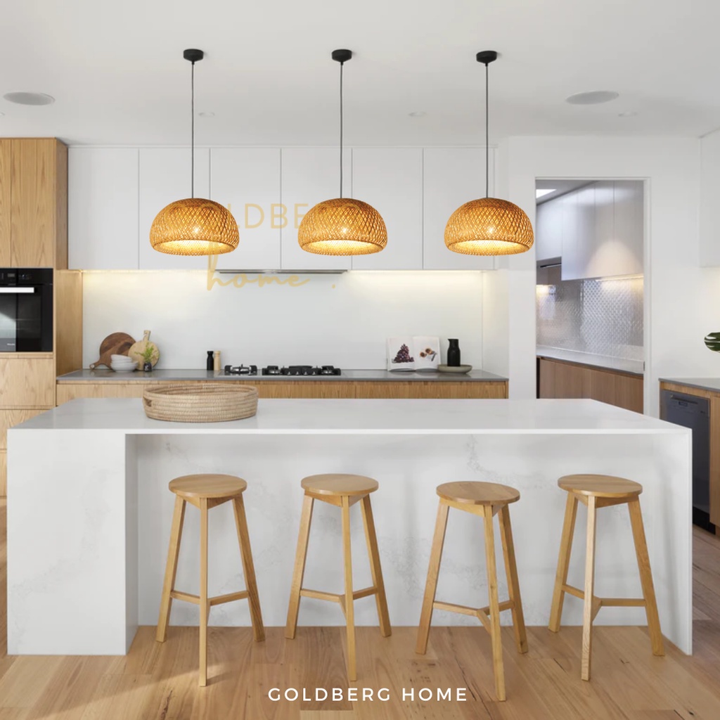 Goldberg Premium Nordic Rattan Pendant Light Wooden 12W 28CM 40CM Living Room Dining | Goldberg Home