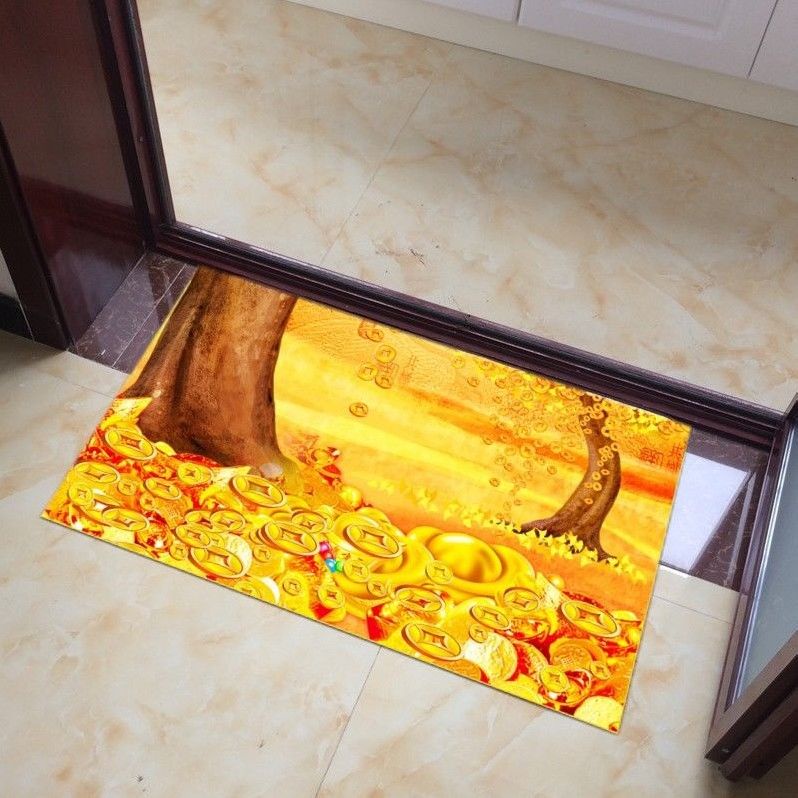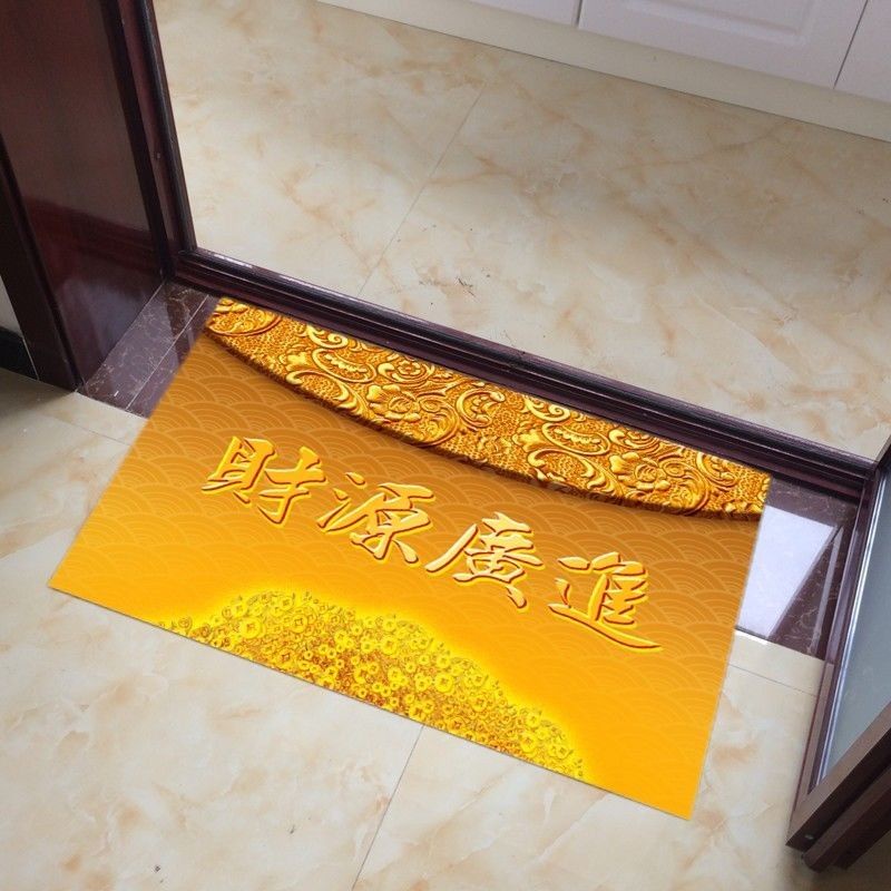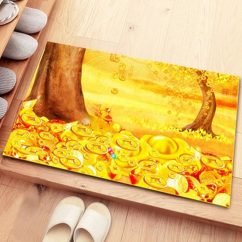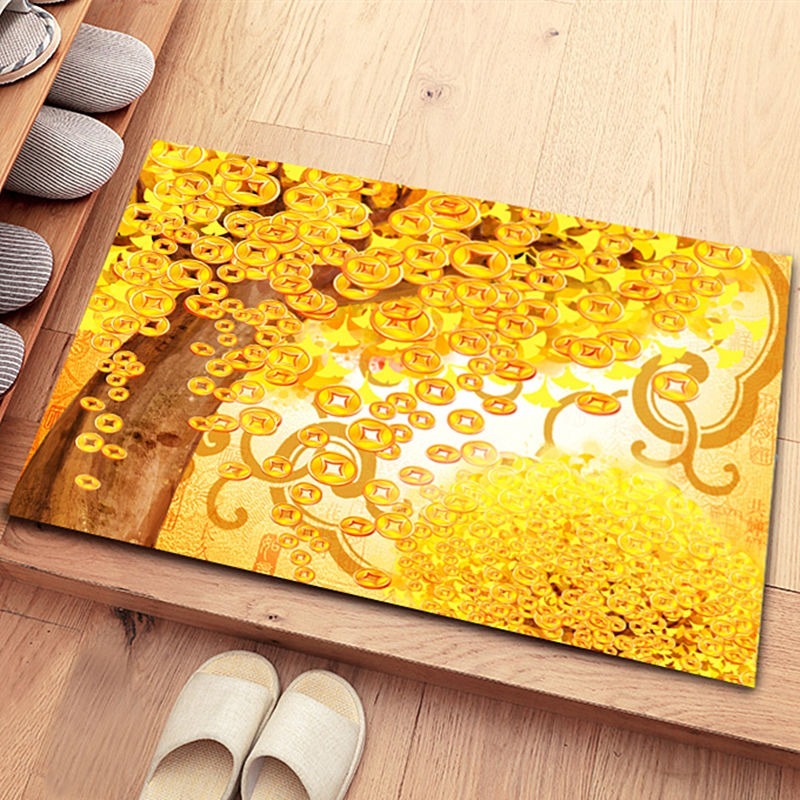 Golden Yellow Floor Mat Feng Shui Carpet Safe Trip Doormat Wire Loop Welcome Door Mat Non-Slip/Good Luck Fortune Feng Shui Five Elements Carpet